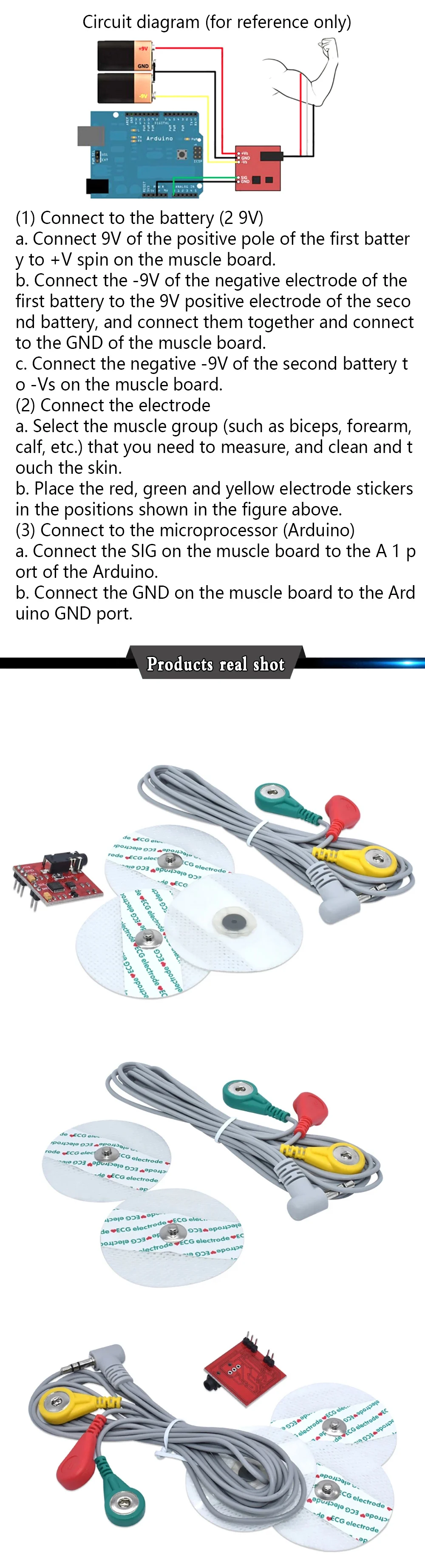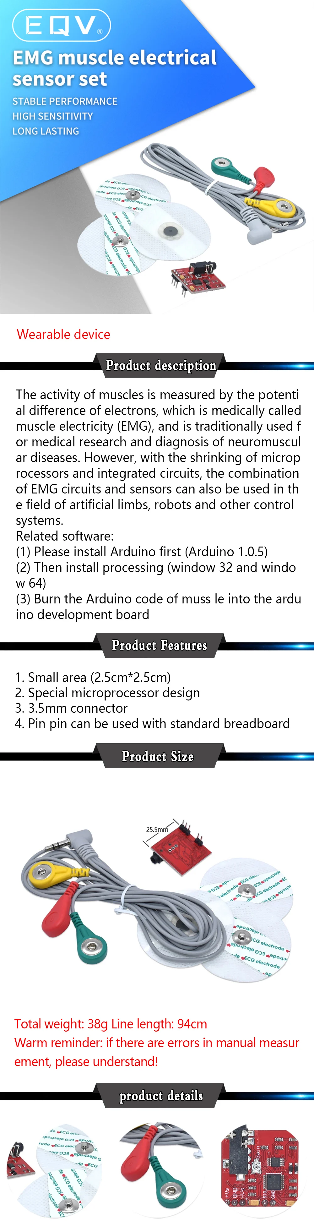Comprar Sensor de señal muscular Controlador de sensor Emg detecta actividad muscular para placa de desarrollo Arduino para dispositivos portátiles
