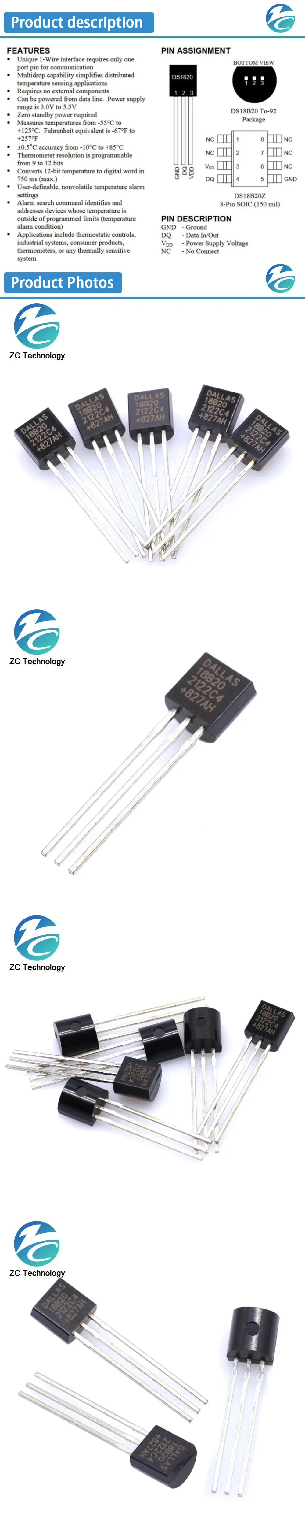 Sensor de temperatura DS18B20 18B20 TO-92, nuevo y original DS18B20 TO92 DS18B20 18B20, 5 unids/lote