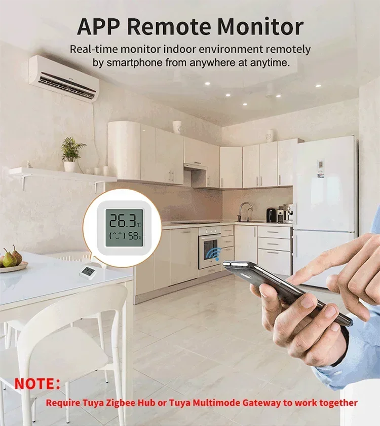 4. No se puede utilizar como un sensor normal de temperatura y humedad, debe estar conectado a la puerta de enlace Tuya Zigbee o puerta de enlace multimodo Tuya.