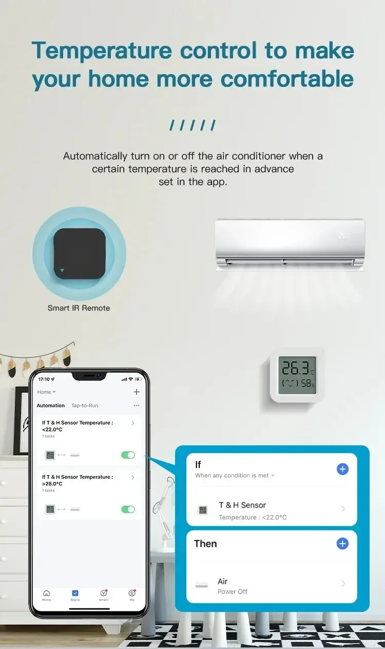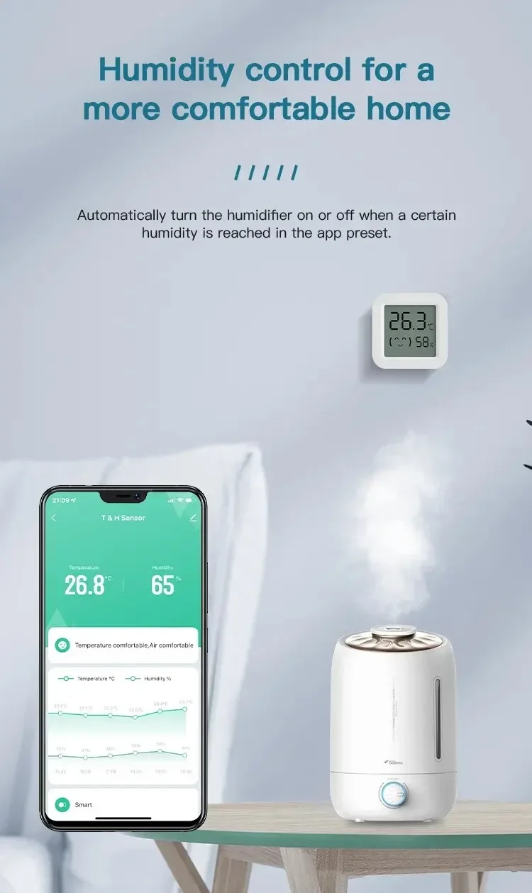 1. Debido a que los altavoces inteligentes de terceros (Google Home/Amazon Alexa) no tienen paneles de control correspondientes a los sensores de temperatura y humedad,