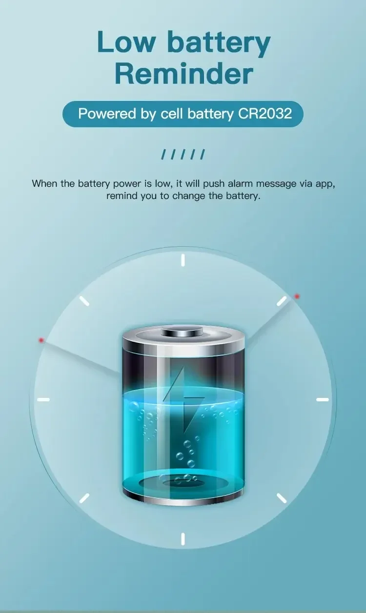 Cuando la batería esté baja, enviará un mensaje de alarma a través de la aplicación, recordándole que debe cambiar la batería.