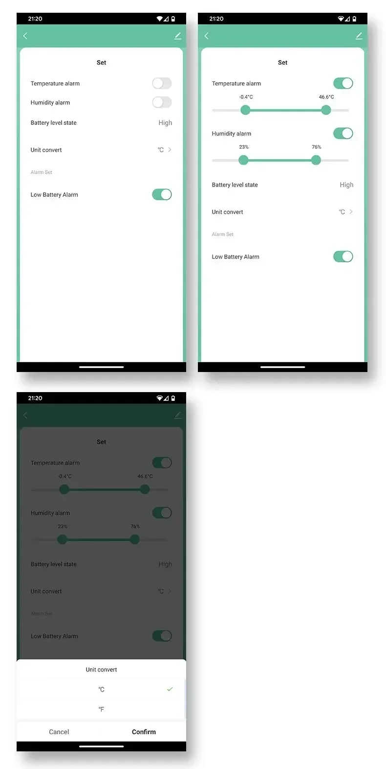 3. El sensor no puede configurar la alarma. La función de alarma se establece en la APP.