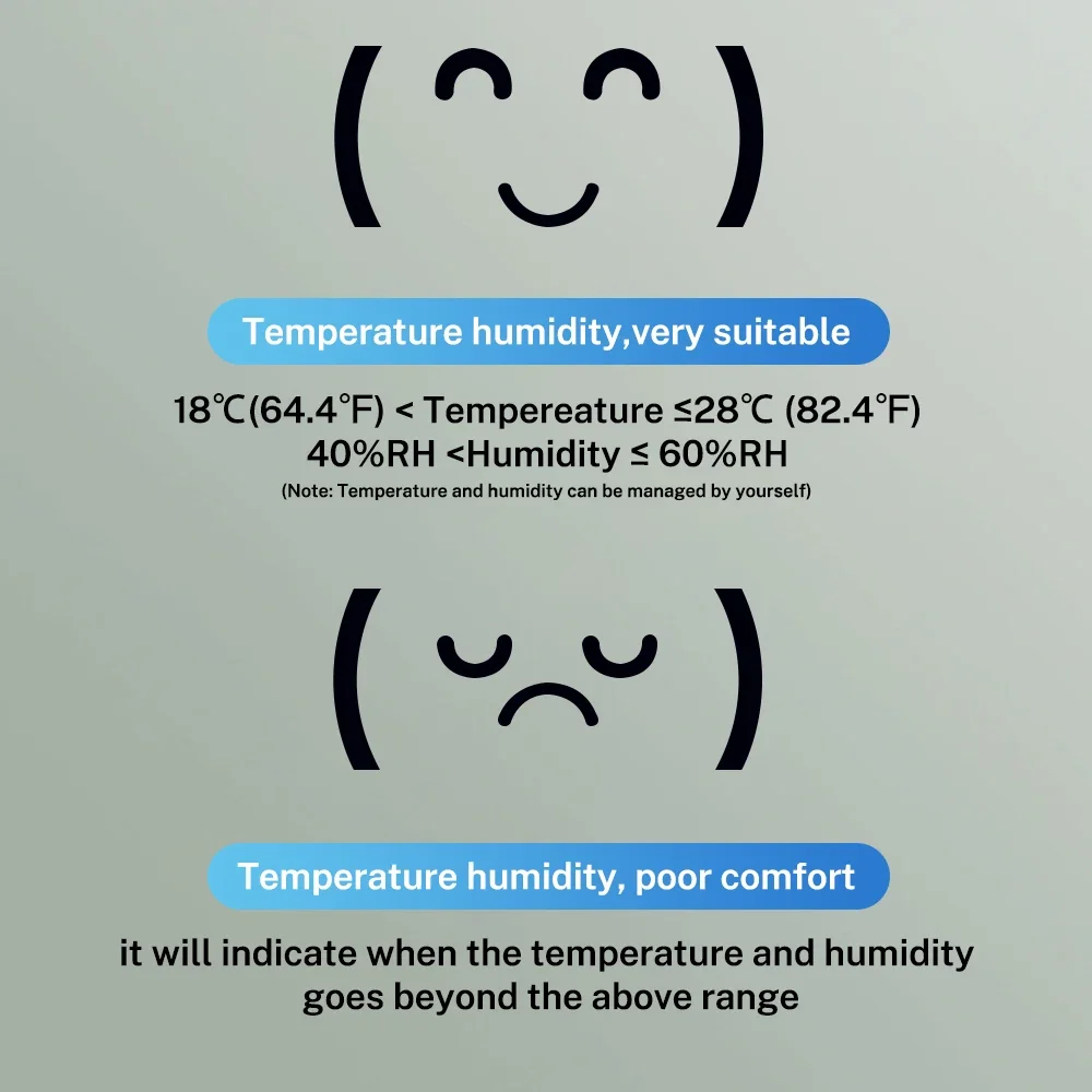 Cuando no estés consciente del más mínimo cambio de tiempo, los niños sensibles y los ancianos ya pueden tener frío, utilizando expresiones intuitivas para ayudarte a comprender fácilmente el nivel de comodidad.