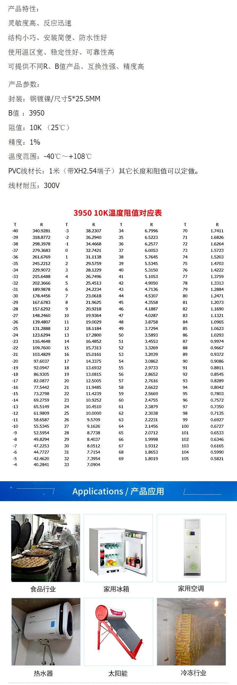 Comprar Sensor de temperatura NTC 5K/10K/20K/50K/100K B3950, termistor