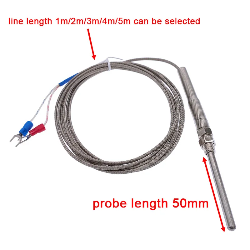 Comprar Sensor de temperatura tipo sonda termopar de 50 mm tipo K 0-400 ℃ termopar de acero inoxidable 1m 2m 3m 4m 5m longitud de línea