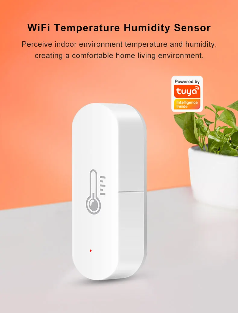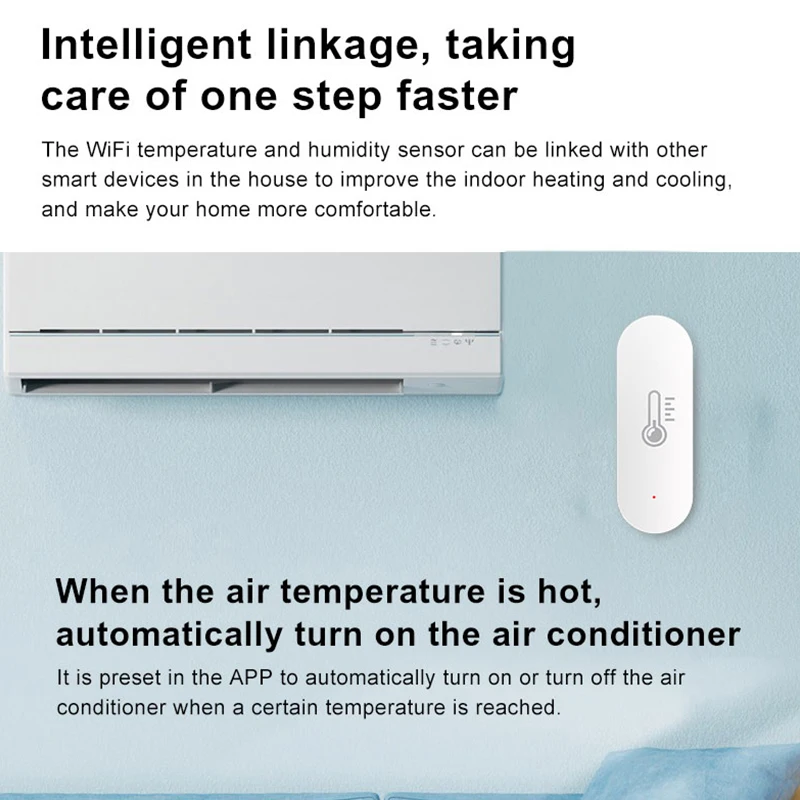 El sensor de temperatura y humedad WiFi se puede vincular con otros dispositivos inteligentes en la casa para mejorar la calefacción y refrigeración interior, y hacer que su hogar sea más cómodo.