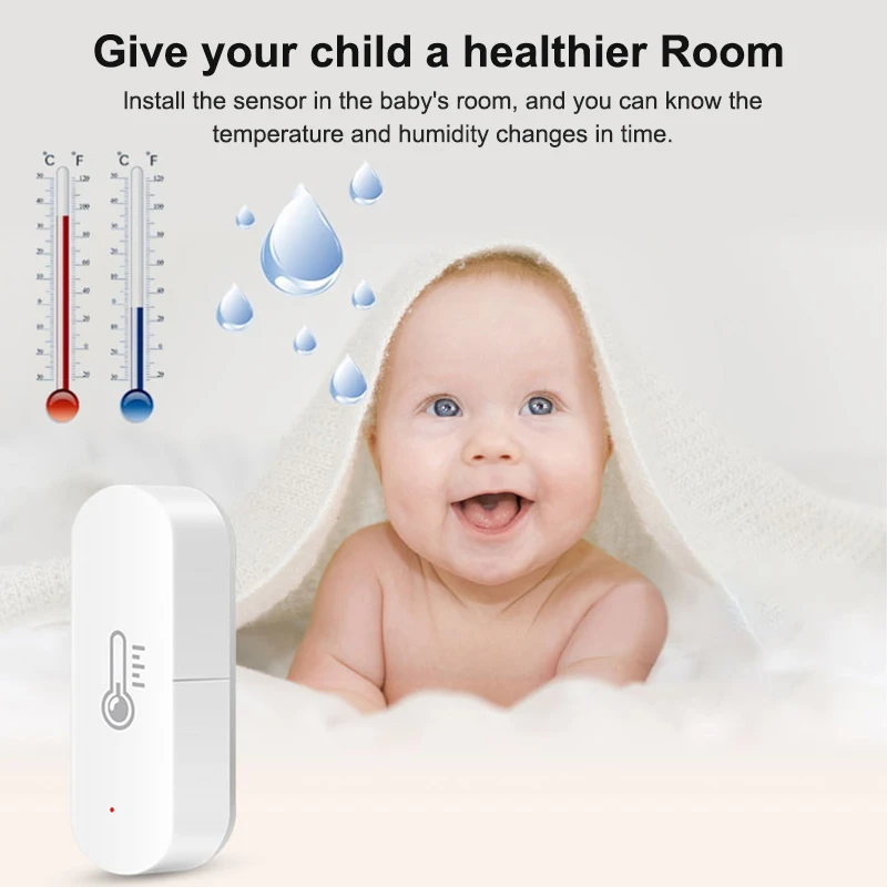 Instale el sensor en la habitación del bebé y podrá conocer los cambios de temperatura y humedad a tiempo.