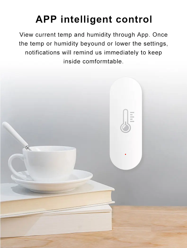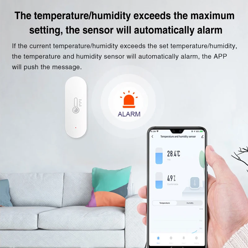 Ver la temperatura y la humedad actuales a través de la aplicación. Una vez que la temperatura o la humedad supere o baje la configuración, las notificaciones nos recordarán inmediatamente que debemos mantenernos en el interior cómodamente.