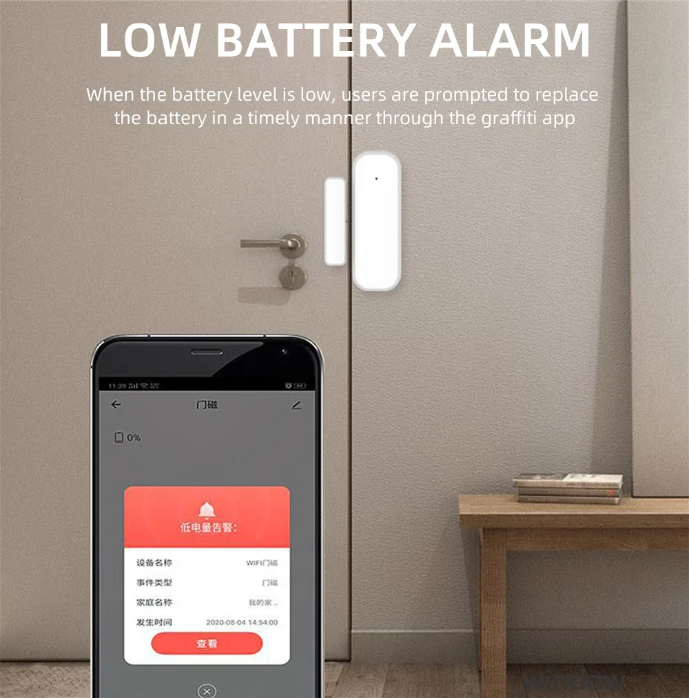 Sensor de ventana Alertas en tiempo real Wifi y conectividad Fácil instalación Compatible con asistentes de voz Alexa