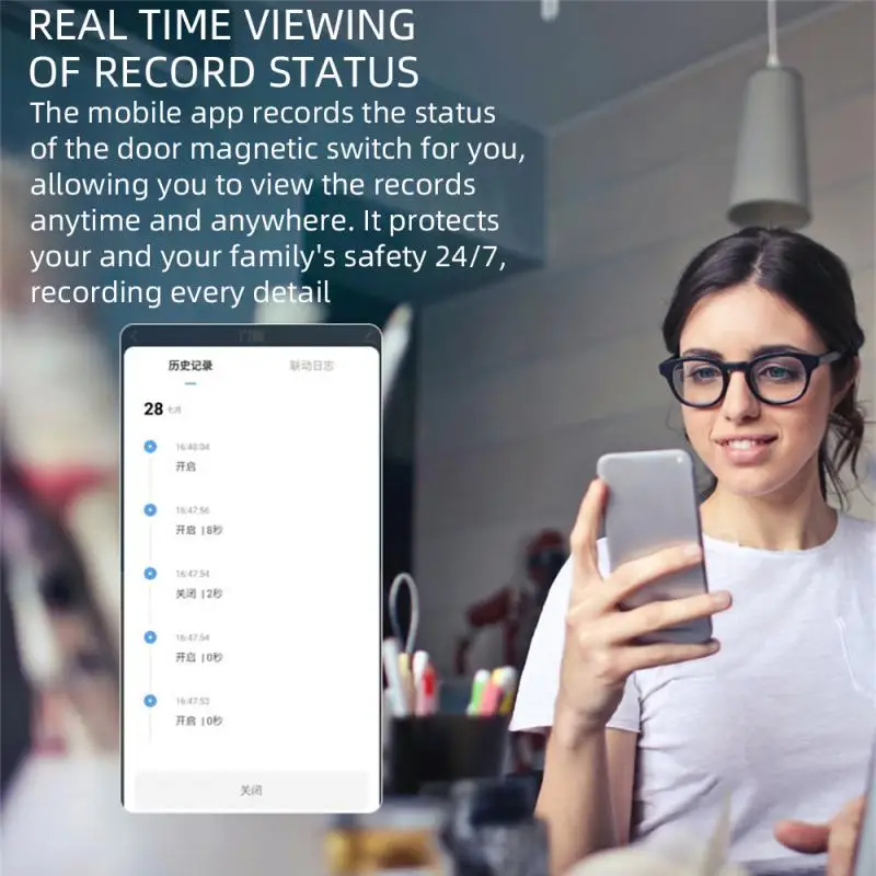 【Detectar el estado de la puerta/ventana】Cuando la puerta/ventana se abre o se cierra, el dispositivo se activa y envía una notificación al teléfono.
