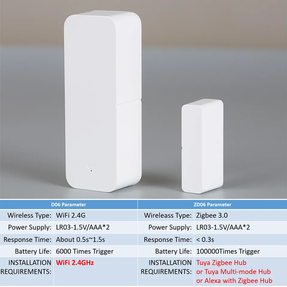 Duración de la batería: 6000 veces de disparo (versión WiFi D06)/100000 disparo de veces (versión Zigbee ZD06)