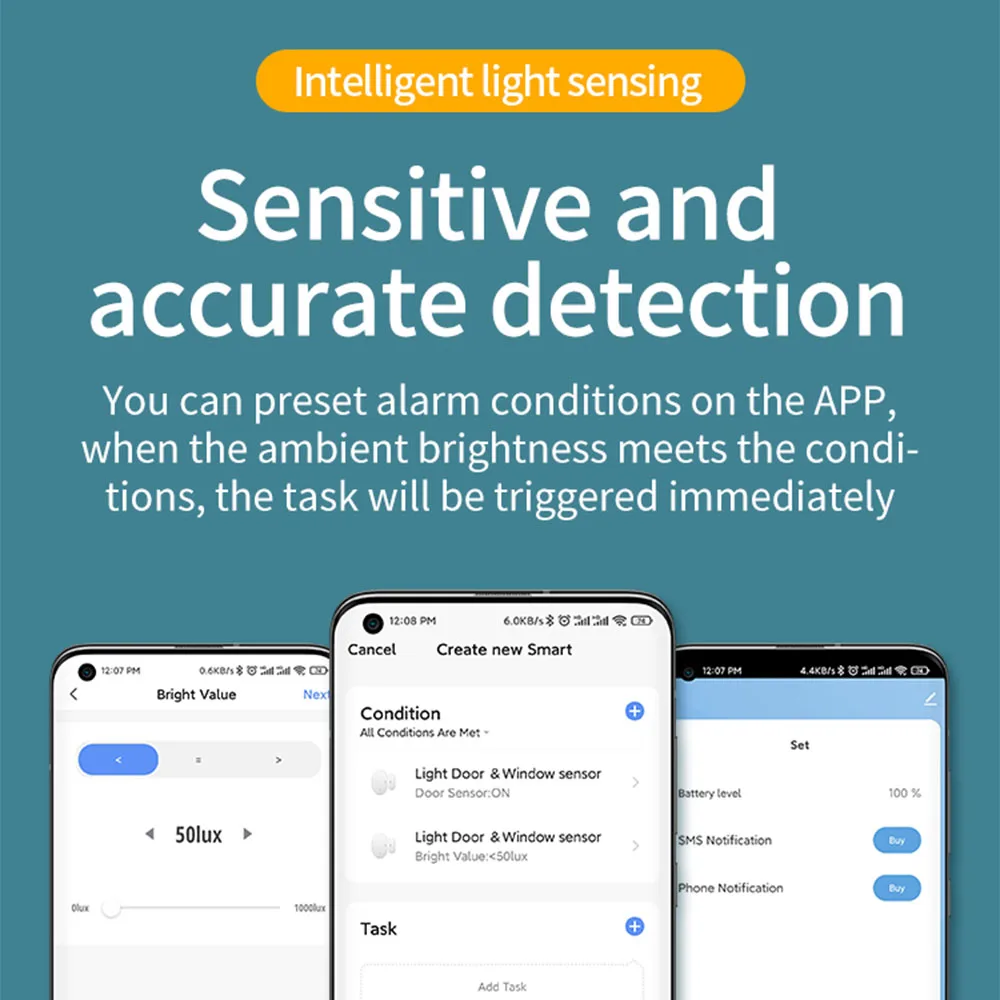 Comprar Sensor de ventana de puerta Zigbee 3,0 con detectores de luz Lux protección de seguridad Control de vida inteligente a través de Alexa Google Home