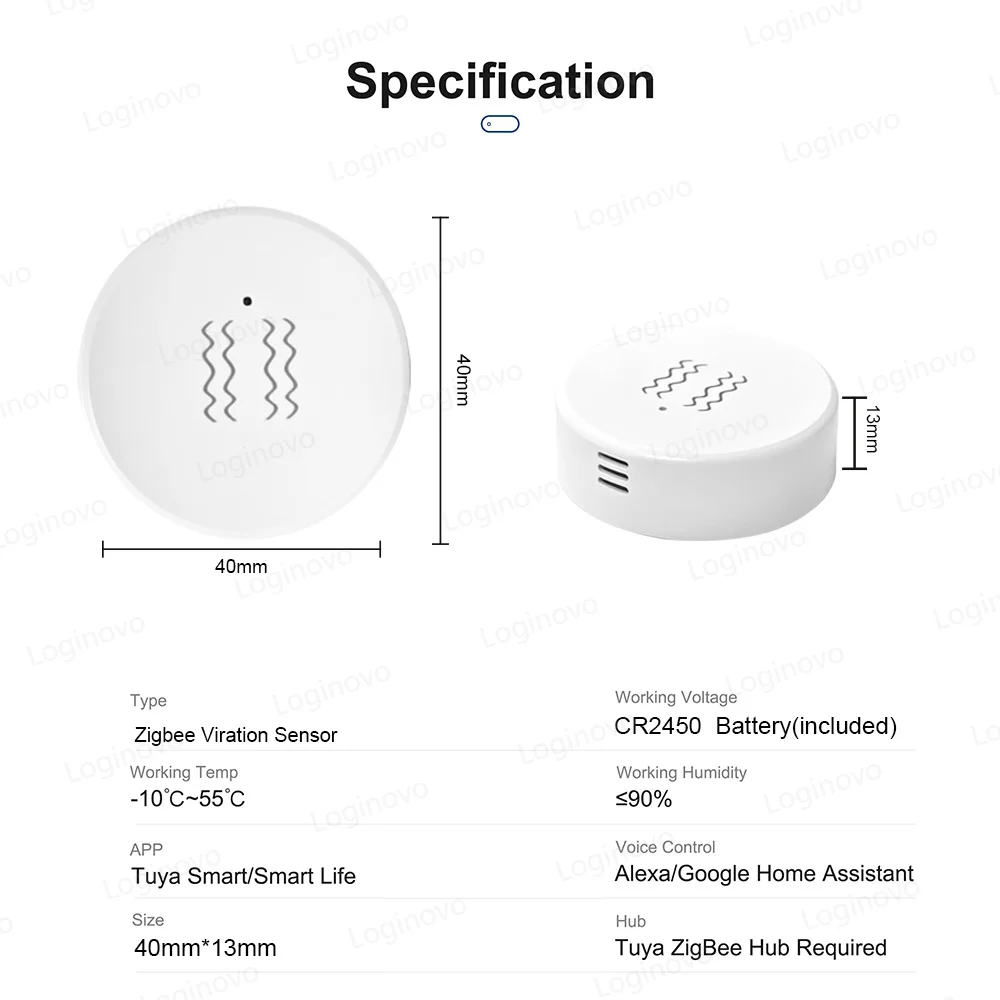 Comprar Sensor de vibración inteligente Zigbee, sensores de inclinación de vibración de vida inteligente Tuya, protección de seguridad para el hogar, alarma de Monitor remoto en tiempo Real