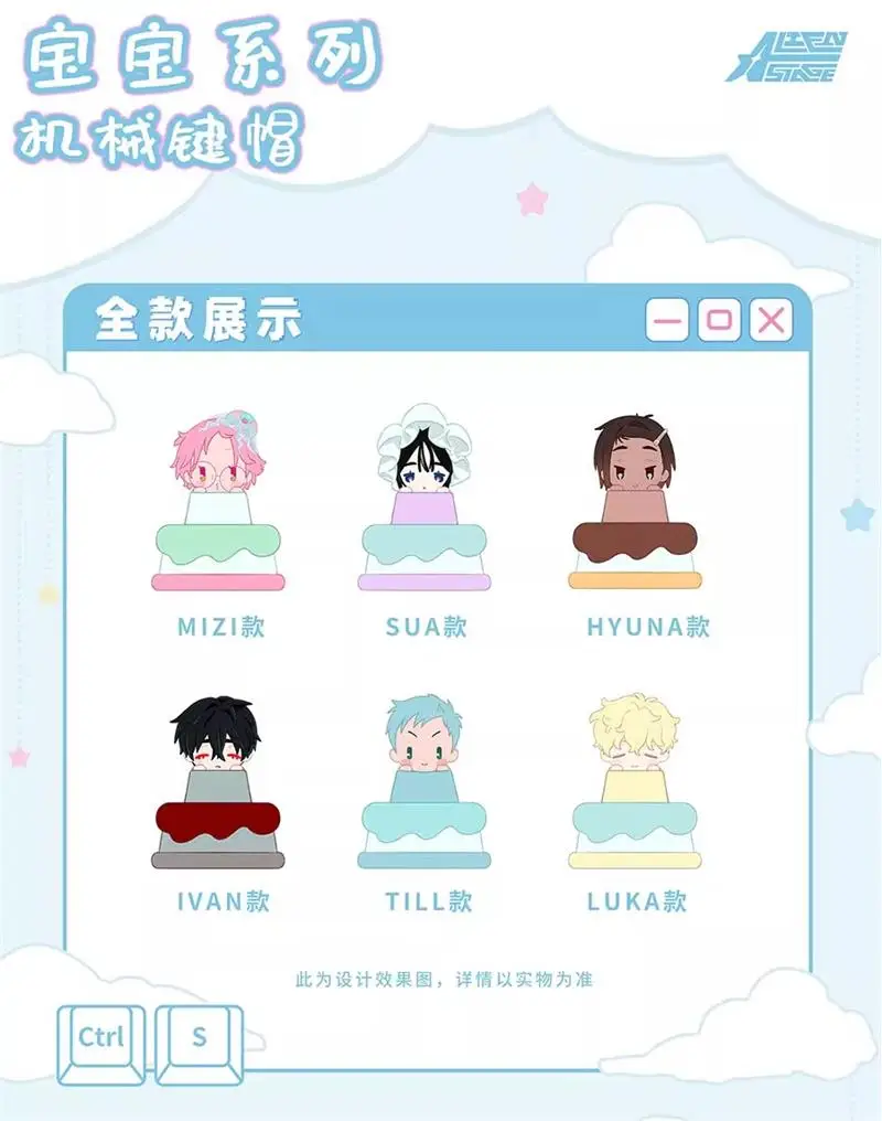 Senyuman-caja ciega de escenario con forma especial, tapa de tecla personalizada de animación de Anime, serie de dibujos animados para bebé, tapa de llave mecánica, juego aleatorio de la suerte