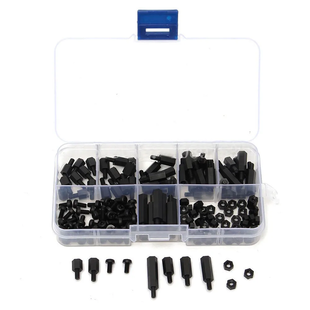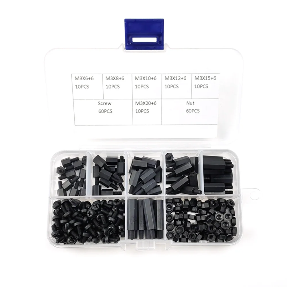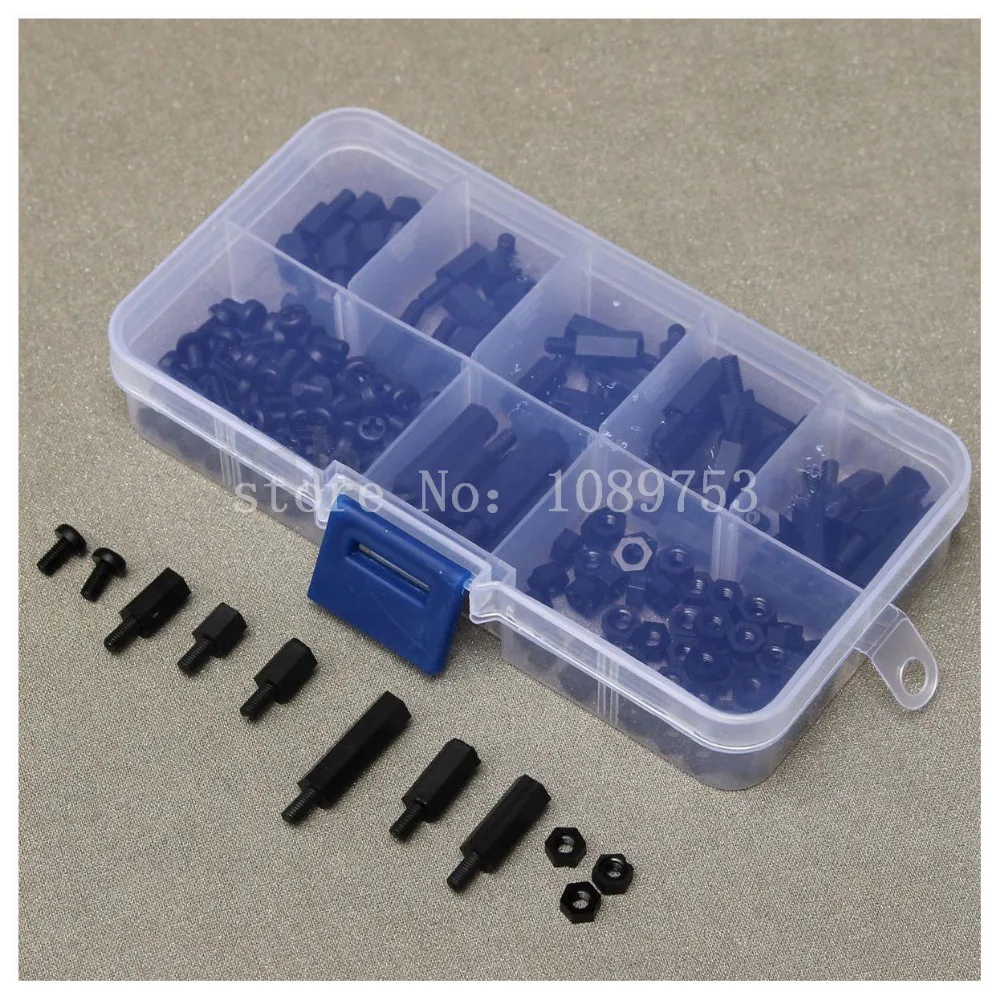220 piezas de Nylon negro M3 columna hexagonal macho-hembra separador espaciadores caja de Kit de tuercas de tornillo