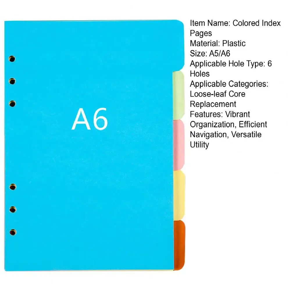 Divisores de organización de archivos Divisores de carpeta de anillo de plástico coloridos con pestañas para carpetas de 6 anillos Cuadernos Índice pastel para tres