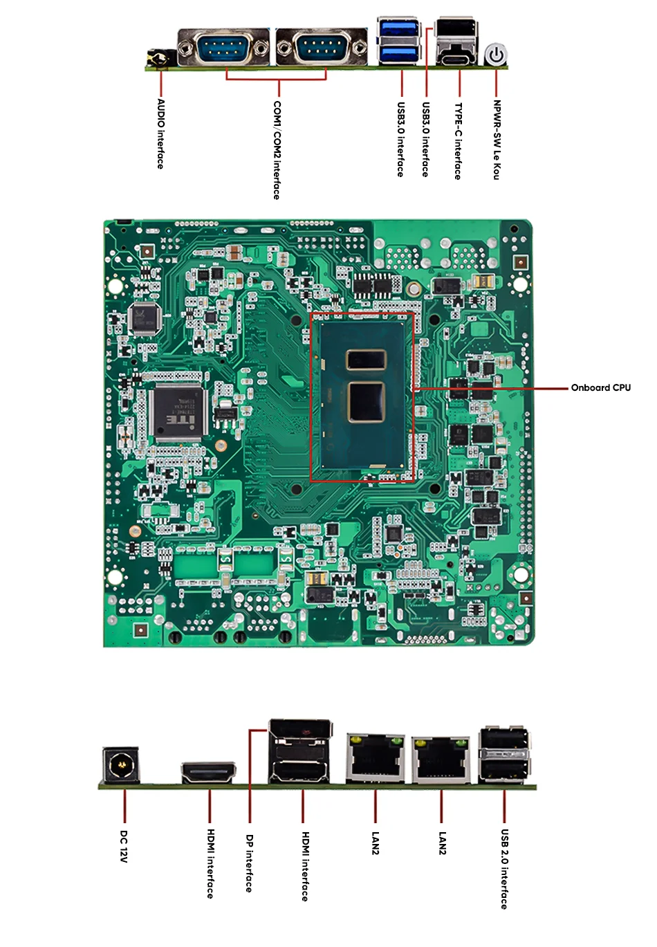 -2xIntel i226-V 2.5G RJ45, 2xUSB3.2, 3xUSB2.0, 1xType-C, 2xCOM RS232/RS485, 2xHDMI, 1xDP, 1xAudio.