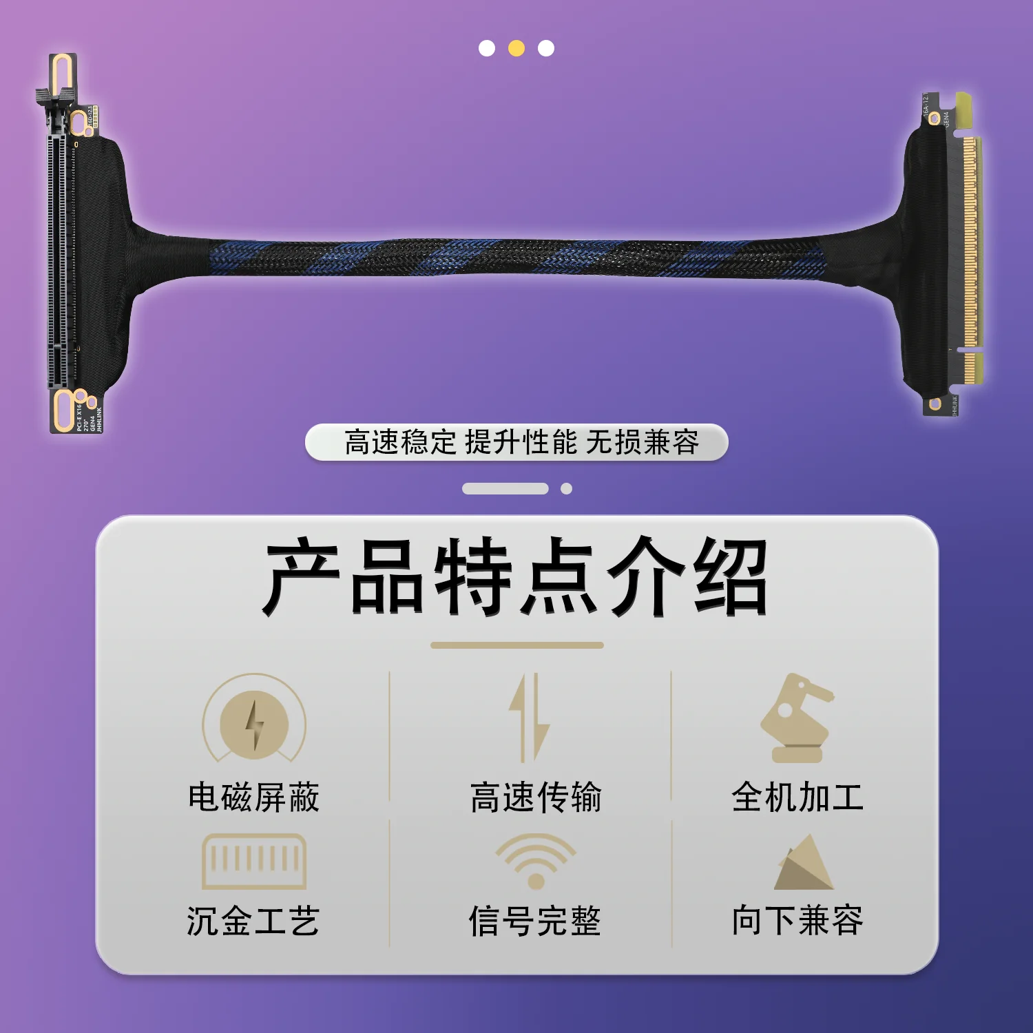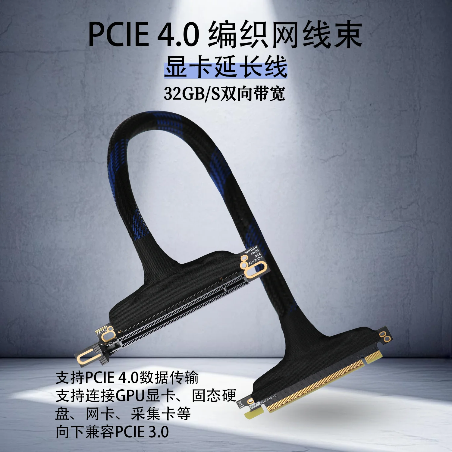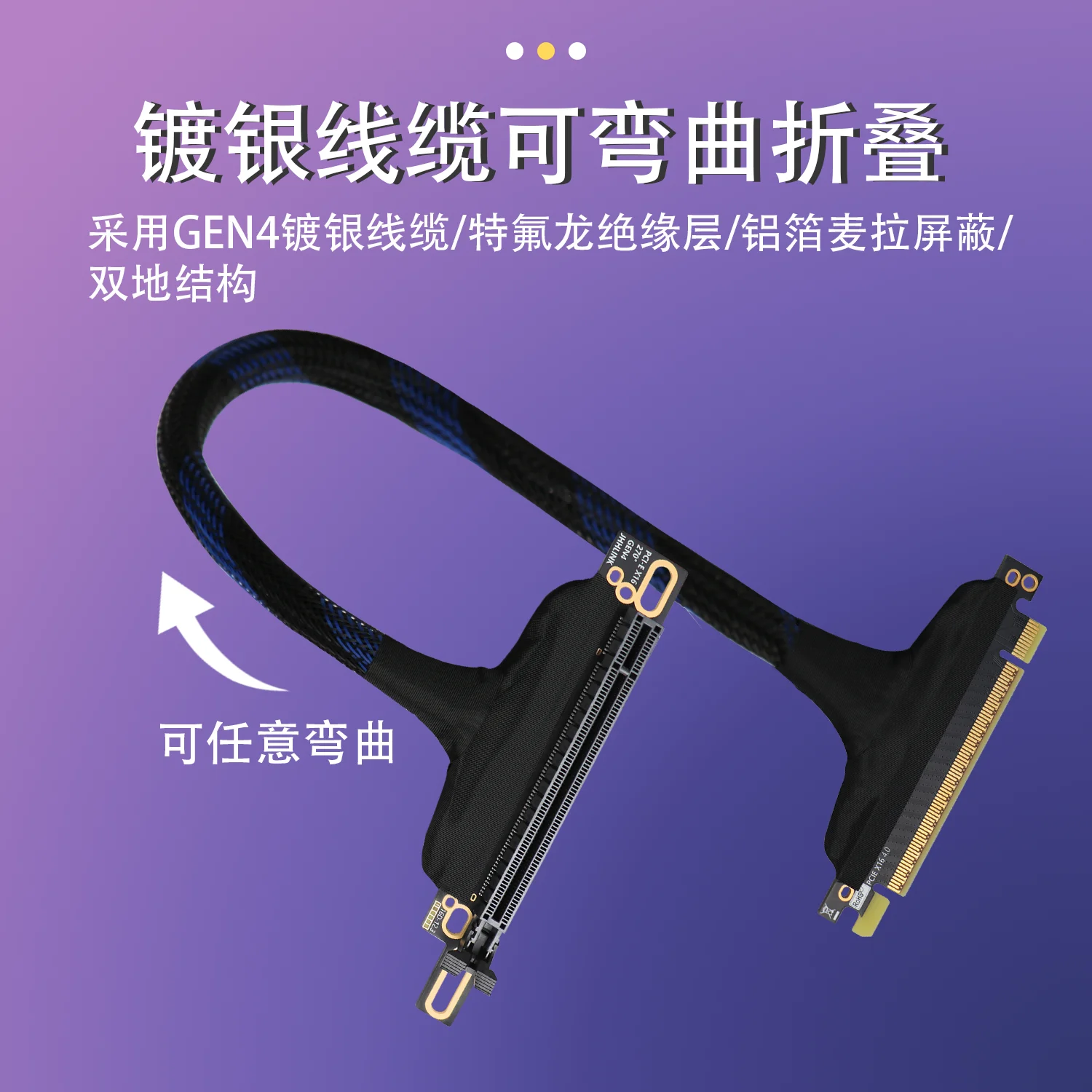 Servidor PCI-E 4,0 X16, Cable de extensión de tarjeta gráfica de 270 grados, Cable adaptador GPU de malla trenzada GEN 4, Cable plateado para GPU AI