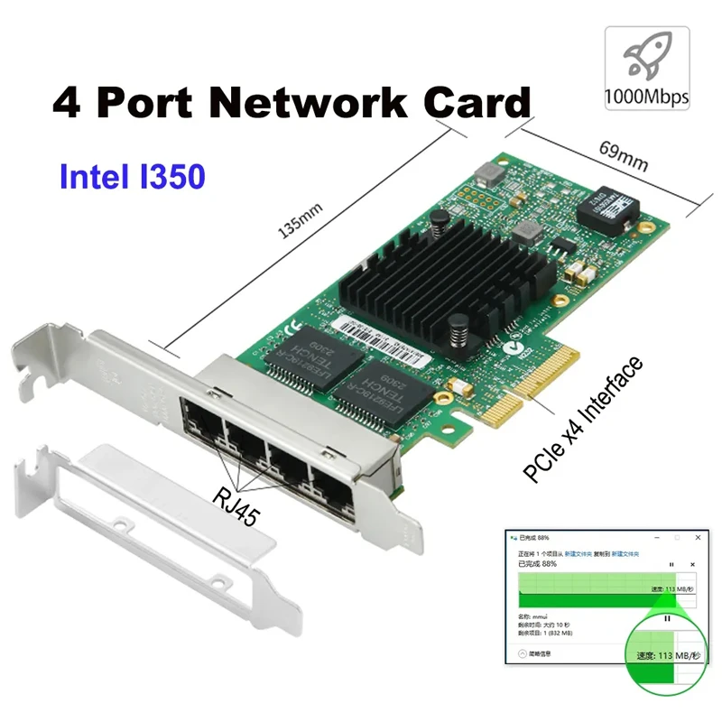 1 x tarjeta controladora Ethernet PCl Express a cuatro Gigabit
