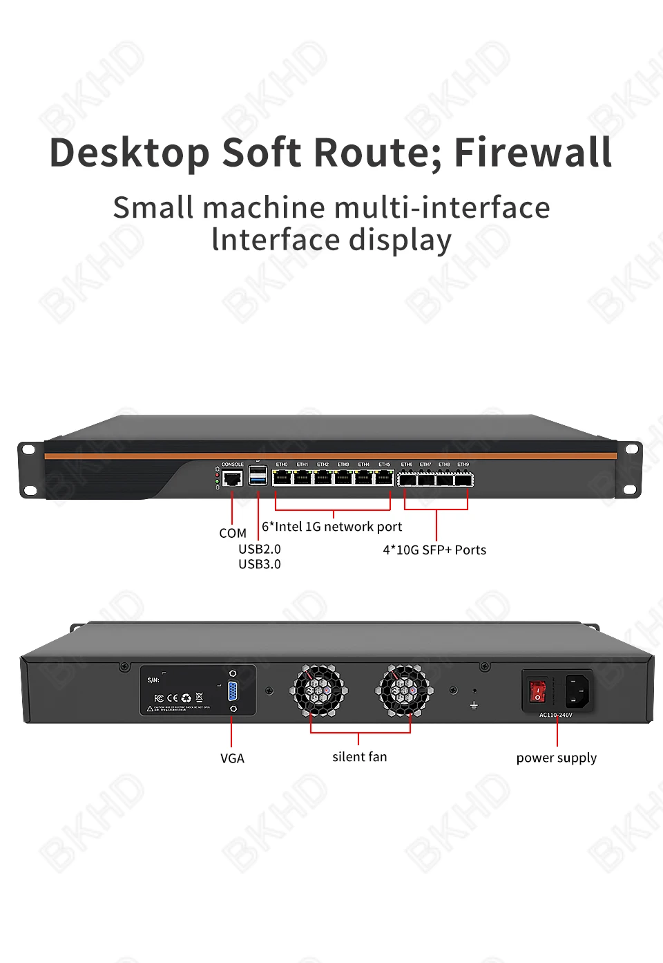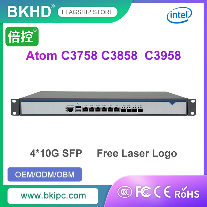 Comprar Servidor Rackmount BKHD 1U Denverton C3558 C3758 intel Atom 6L4S Ethernet 4x10G x553 SFP + Router SD WAN Firewall Network Solution