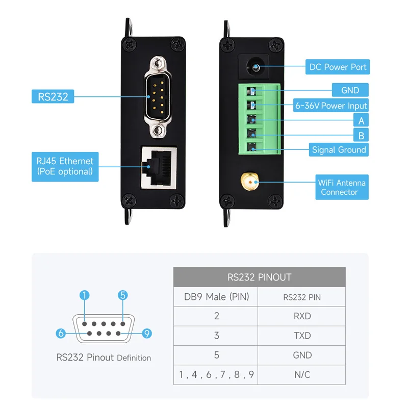 Wiki:Comprar Servidor serie de grado industrial RS232/485 a WiFi Ethernet Modbus MQTT puerta de enlace caja de metal PoE opcional