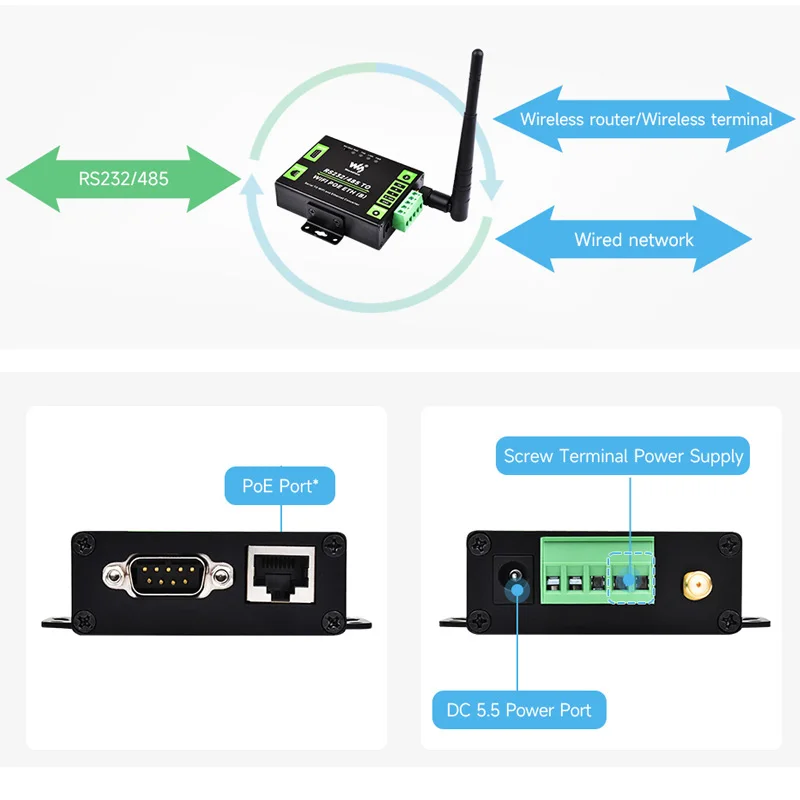 Admite RS232/485 a WIFI y Ethernet, Ethernet a WIFI, etc.