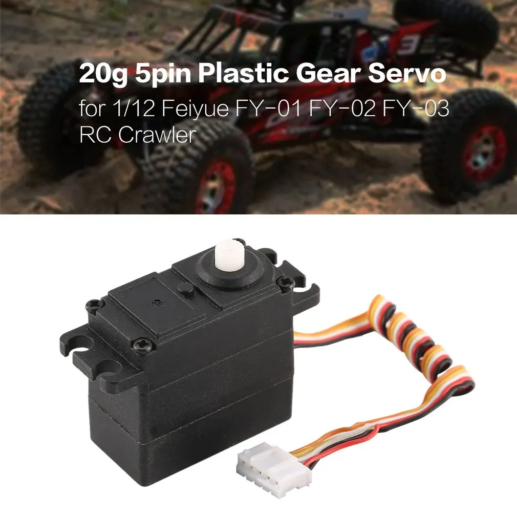Comprar Servo de 20g, engranaje de plástico/Metal de 5 pines, 4,8-6V para 1/12 Feiyue, FY-01, FY-02, RC, coche, oruga, camión, accesorios de dirección