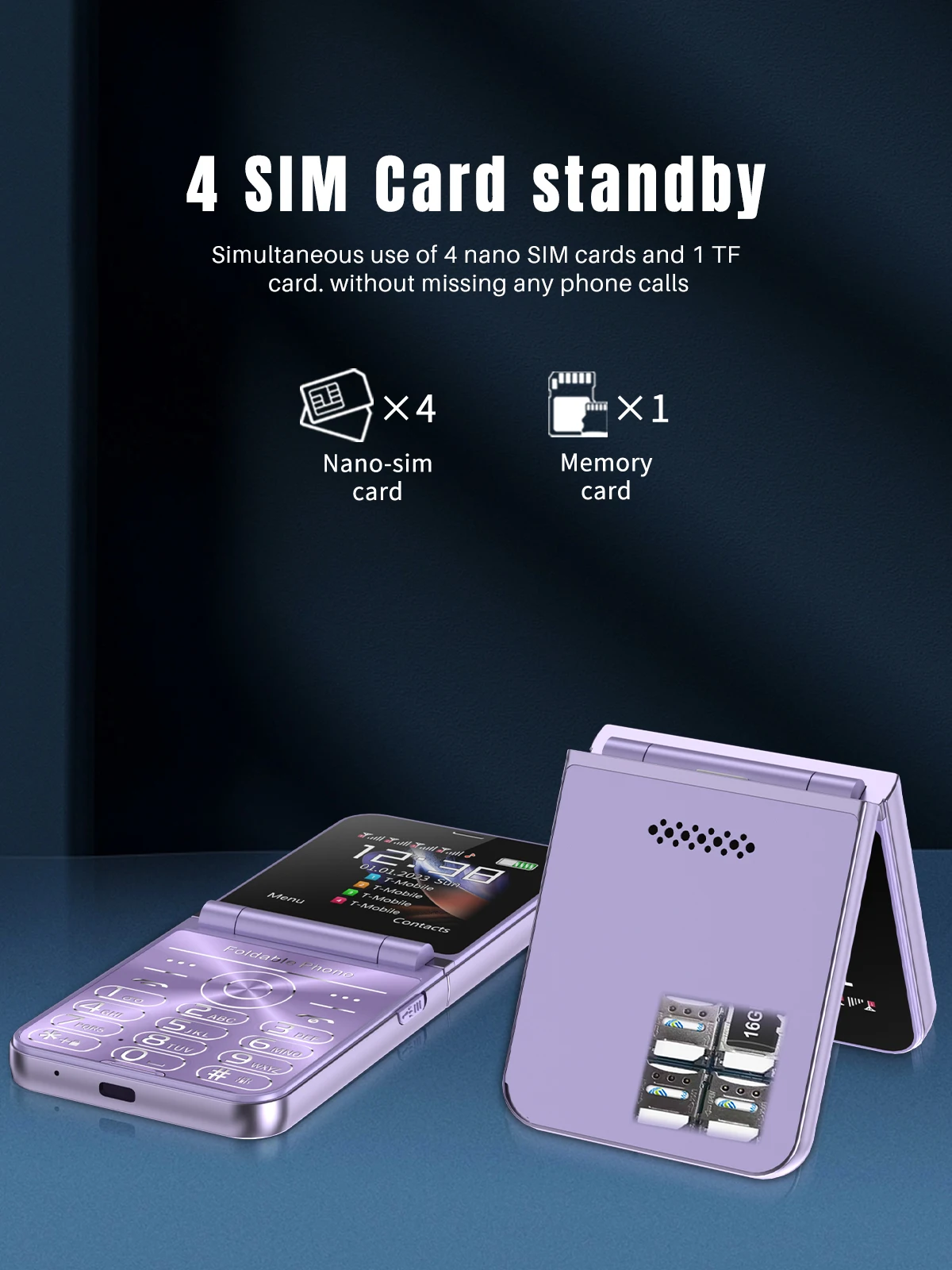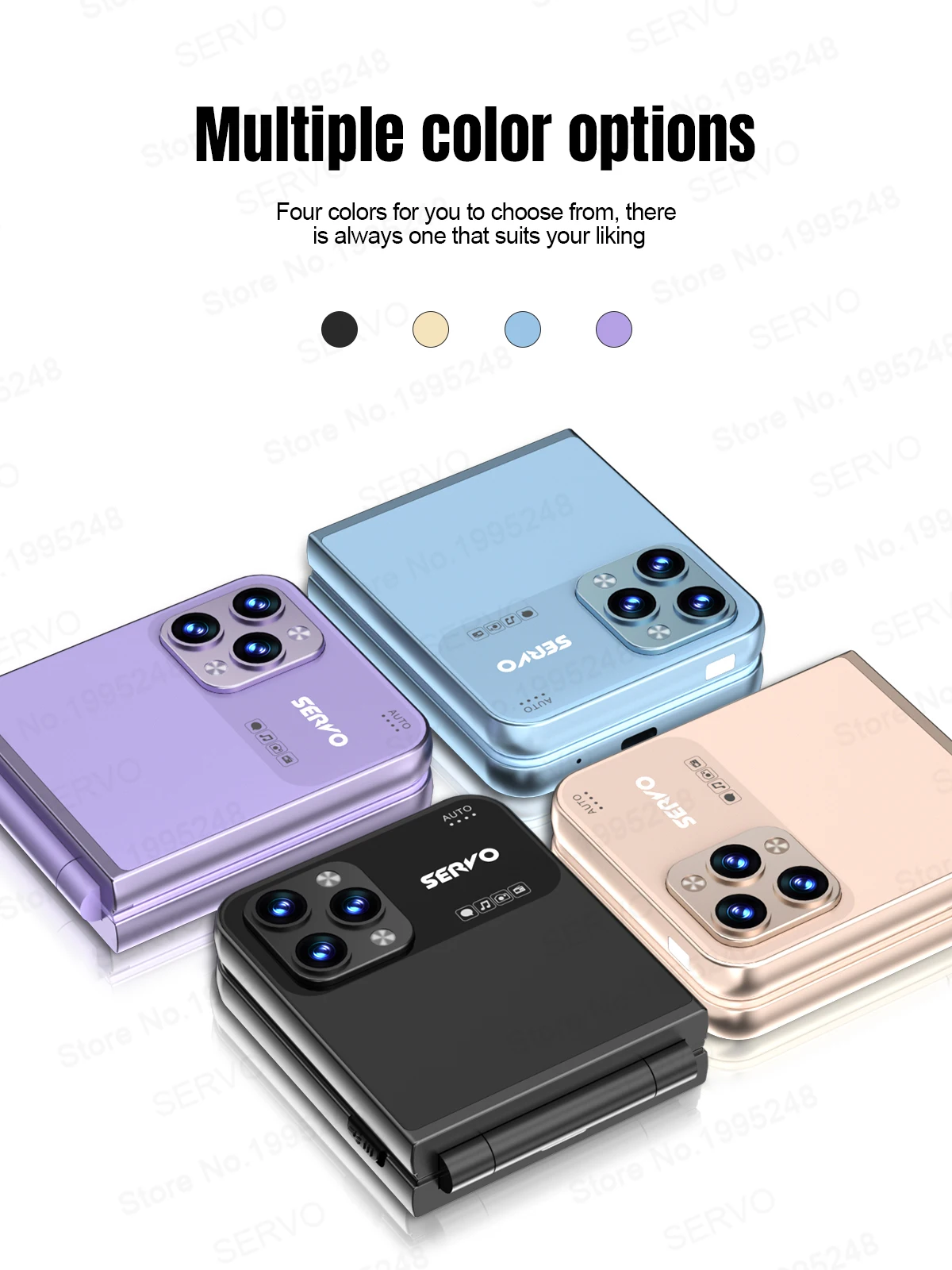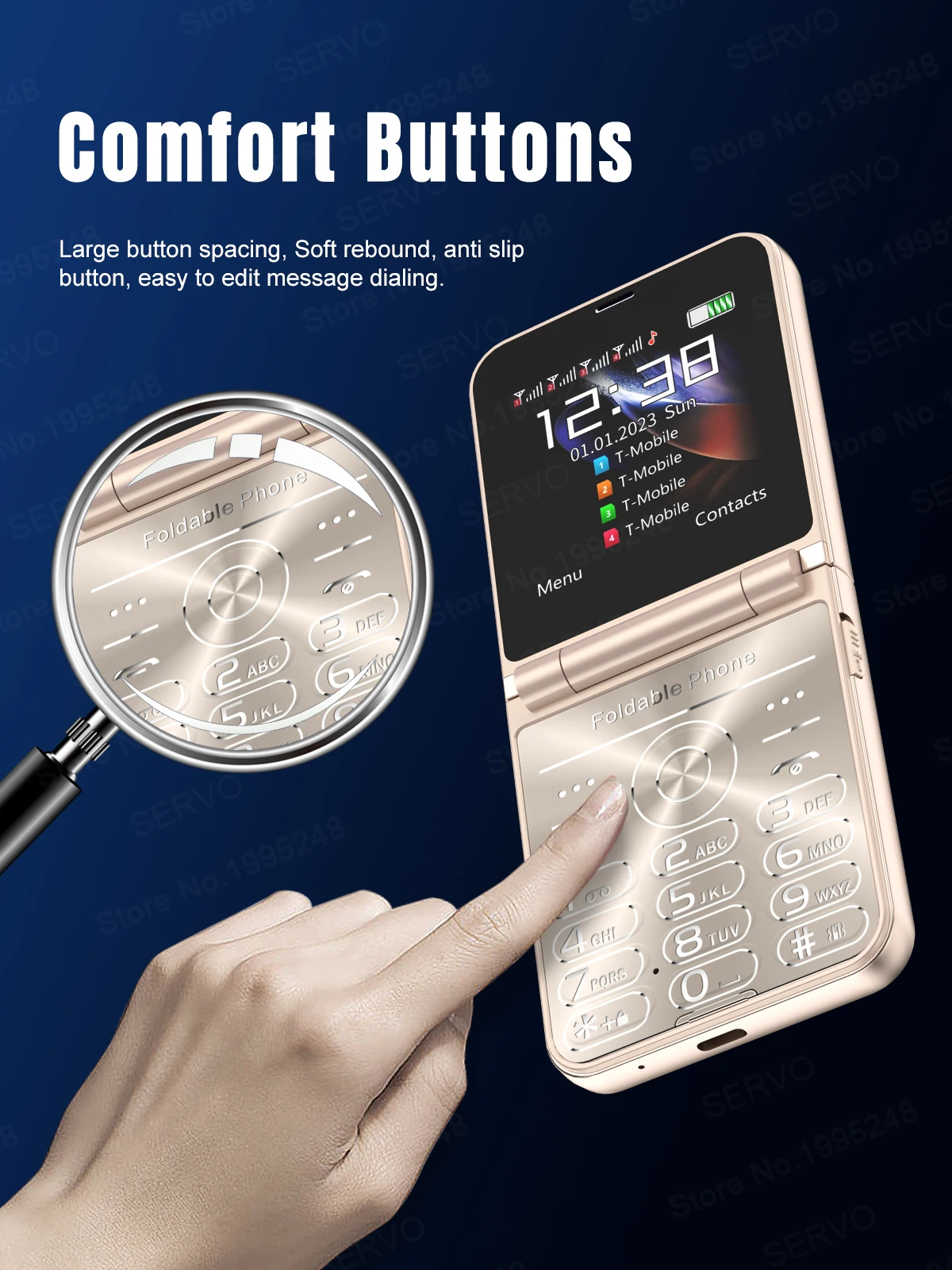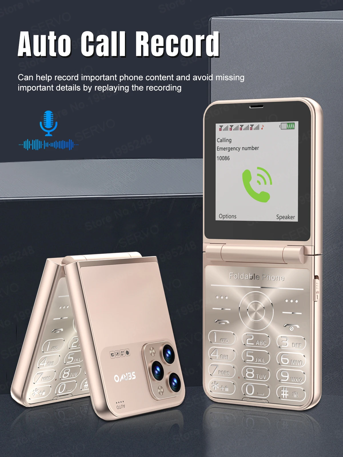 Comprar SERVO Flilo7 teléfono móvil plegable con cuatro SIM, pantalla de 2,6 pulgadas, grabación de llamadas automáticas, Dial de velocidad, Voz Mágica, lista negra, FM, tipo C