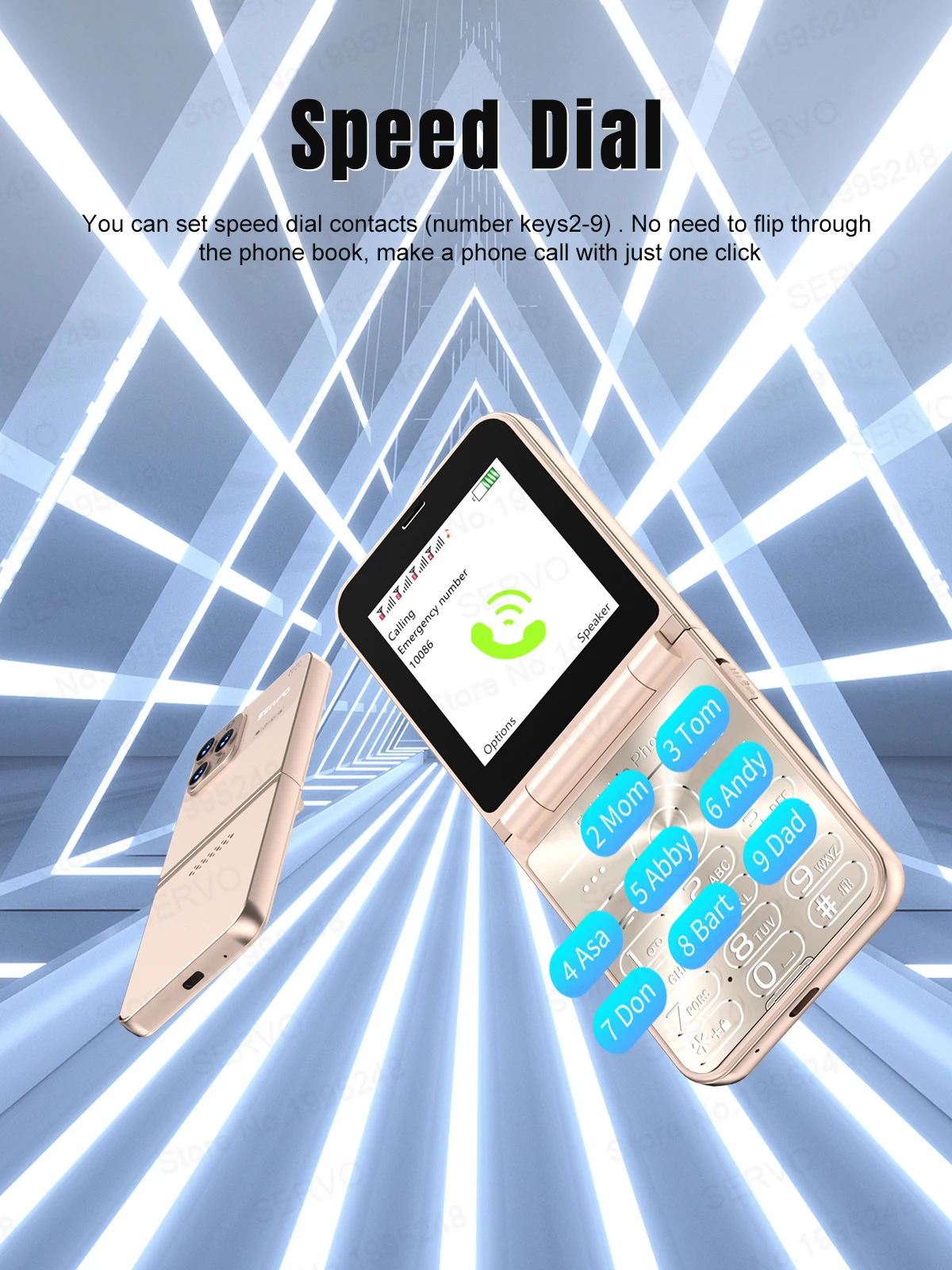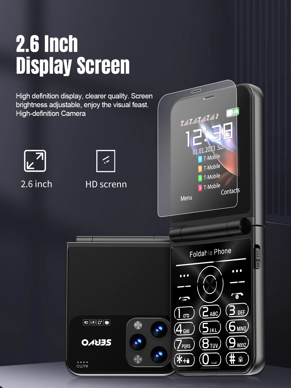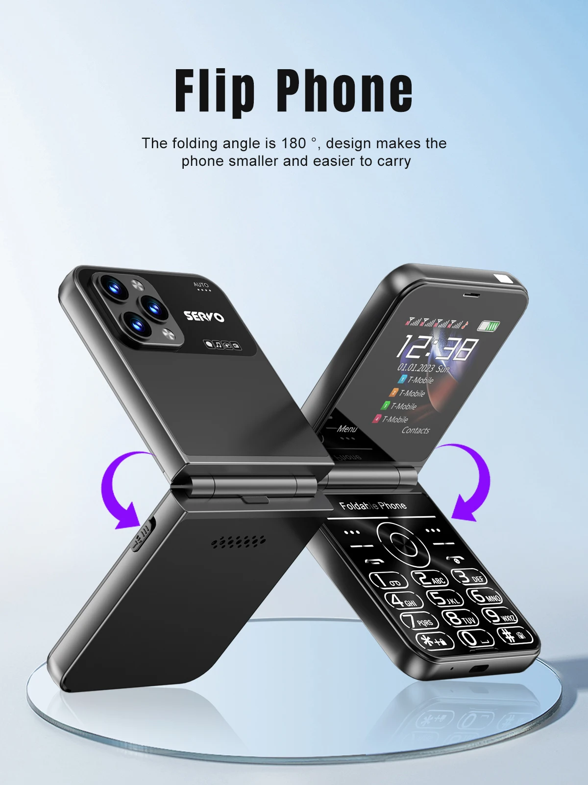 Comprar SERVO Flilo7 teléfono móvil plegable con cuatro SIM, pantalla de 2,6 pulgadas, grabación de llamadas automáticas, Dial de velocidad, Voz Mágica, lista negra, FM, tipo C