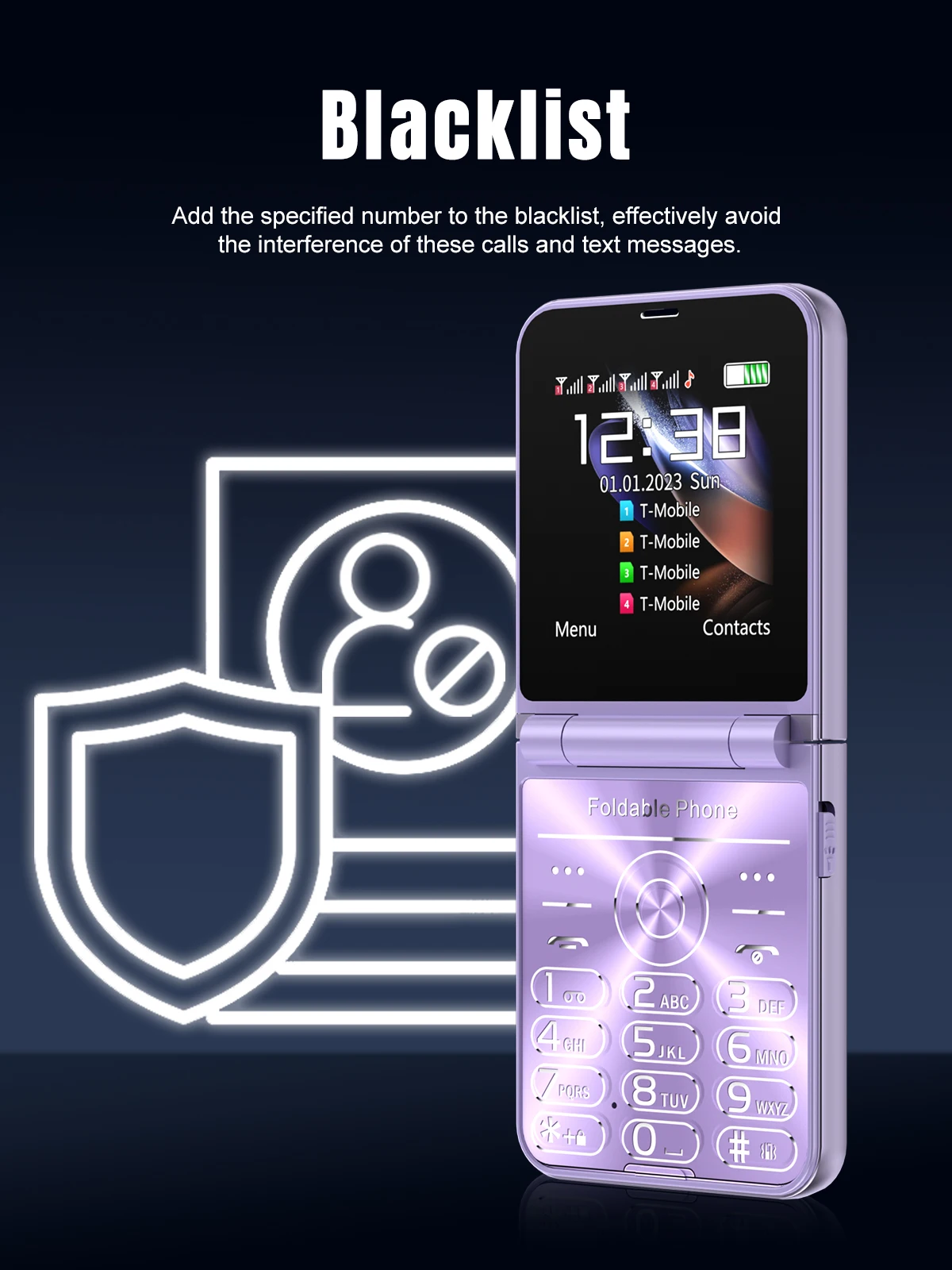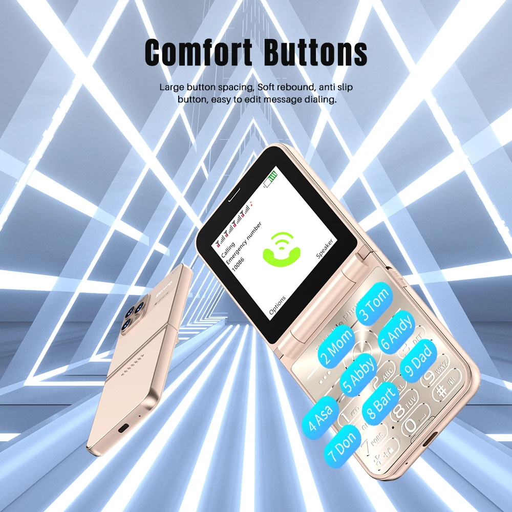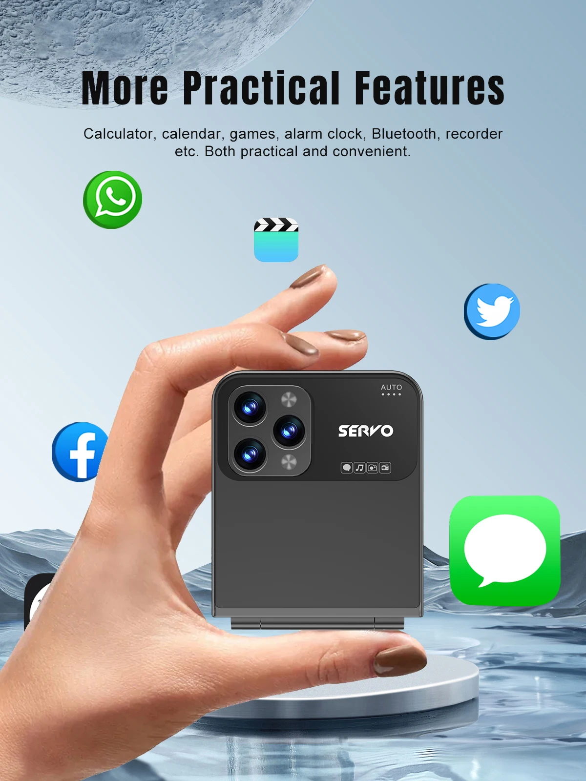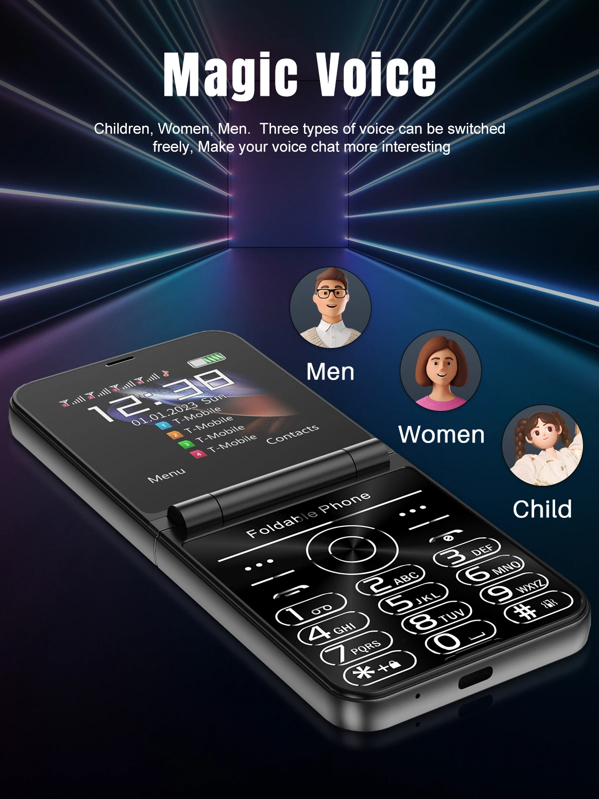 Comprar SERVO Flilo7 teléfono móvil plegable con cuatro SIM, pantalla de 2,6 pulgadas, grabación de llamadas automáticas, Dial de velocidad, Voz Mágica, lista negra, FM, tipo C