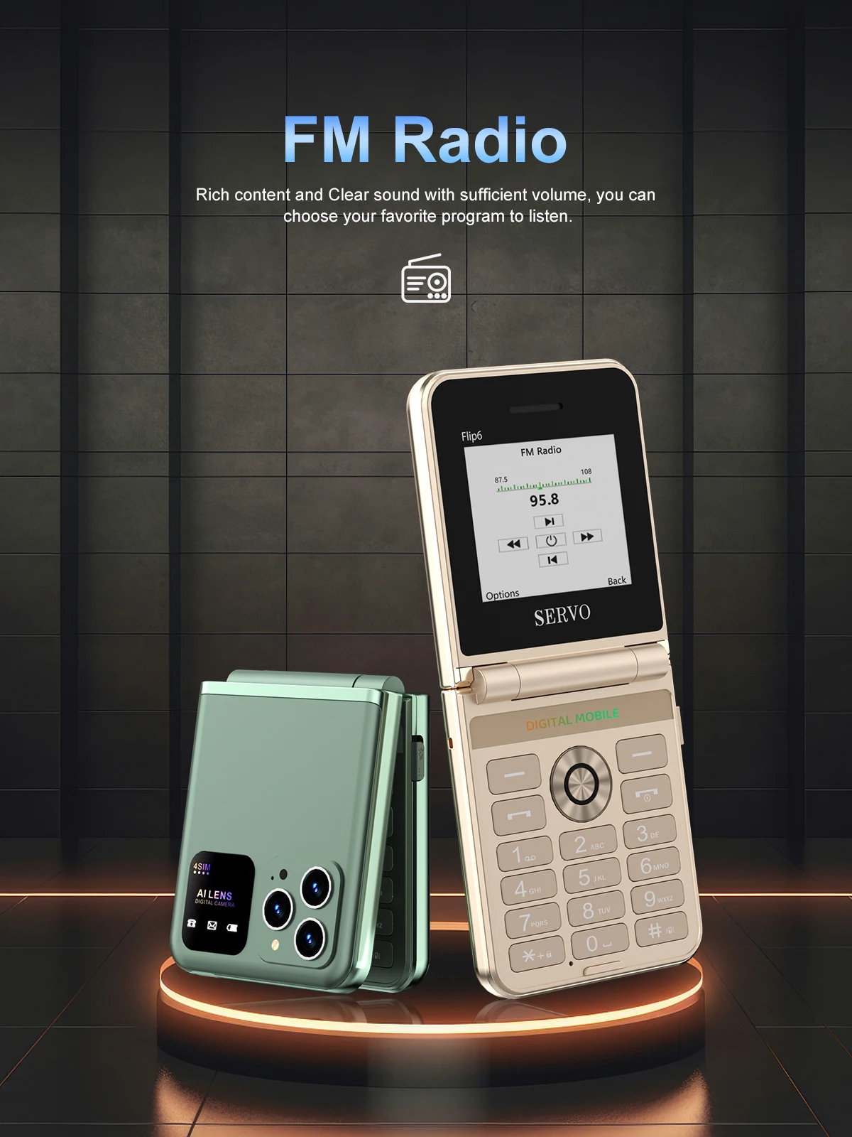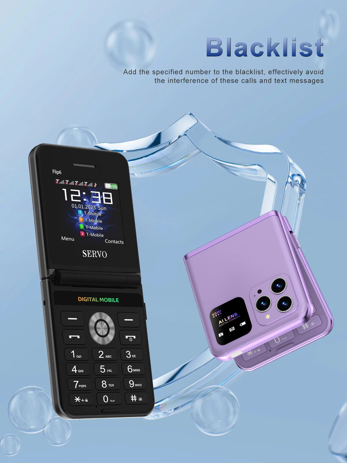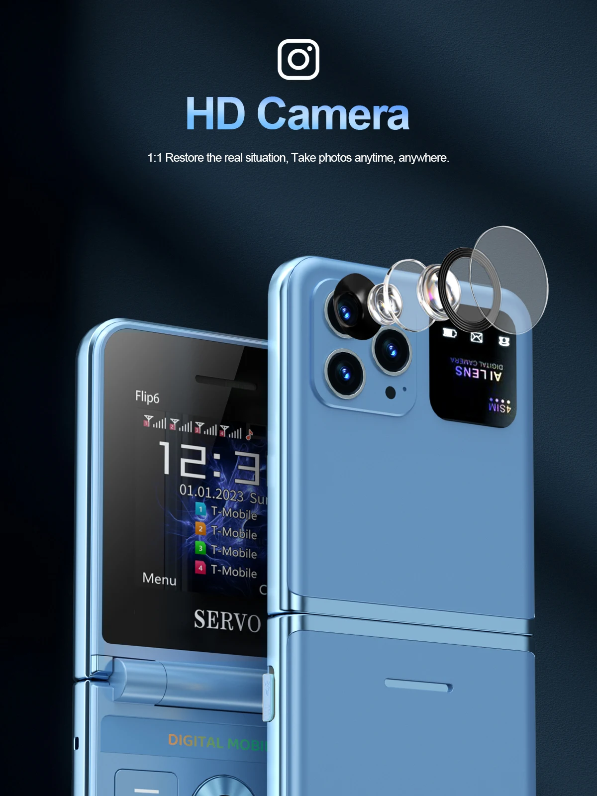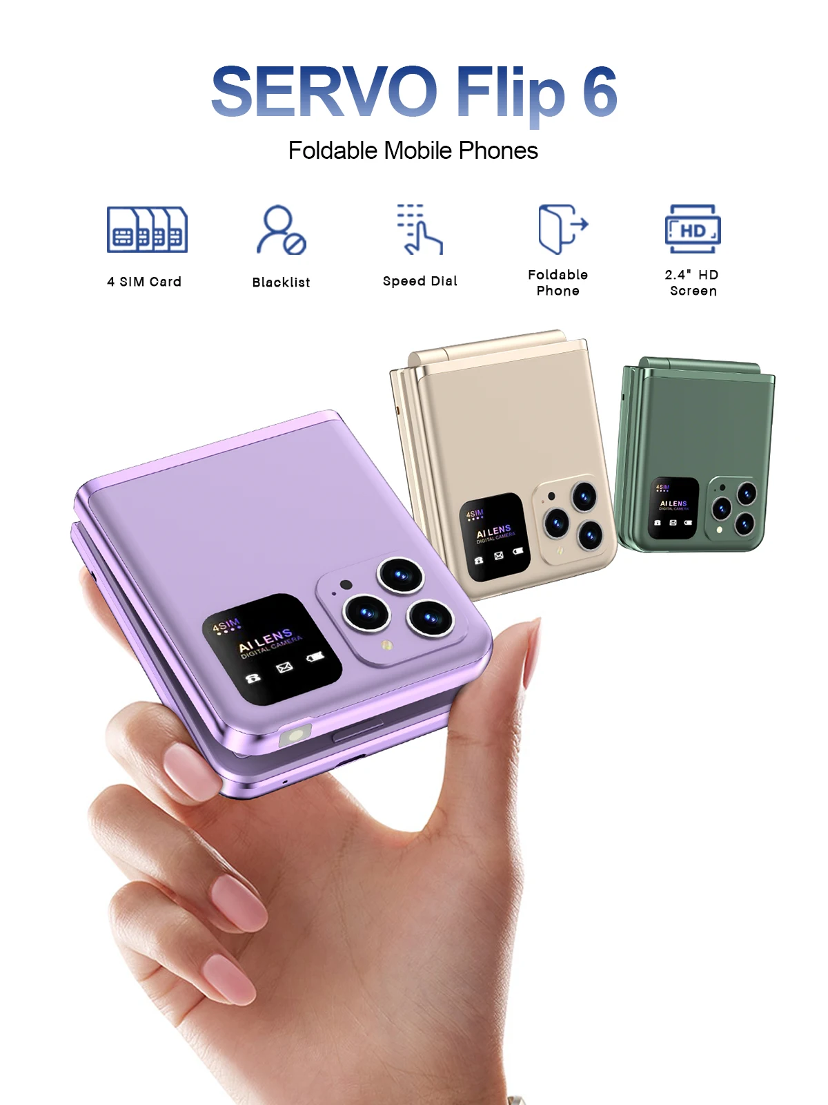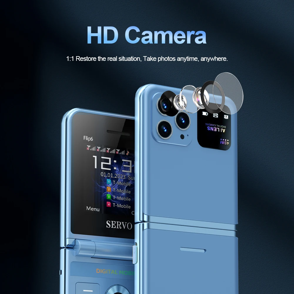 Comprar Servo Flip6 teléfono plegable GSM 4 tarjetas SIM 2.4 'pantalla automática de llamadas botón de grabación de voz linterna de marcado rápido mágico voz teléfono popular