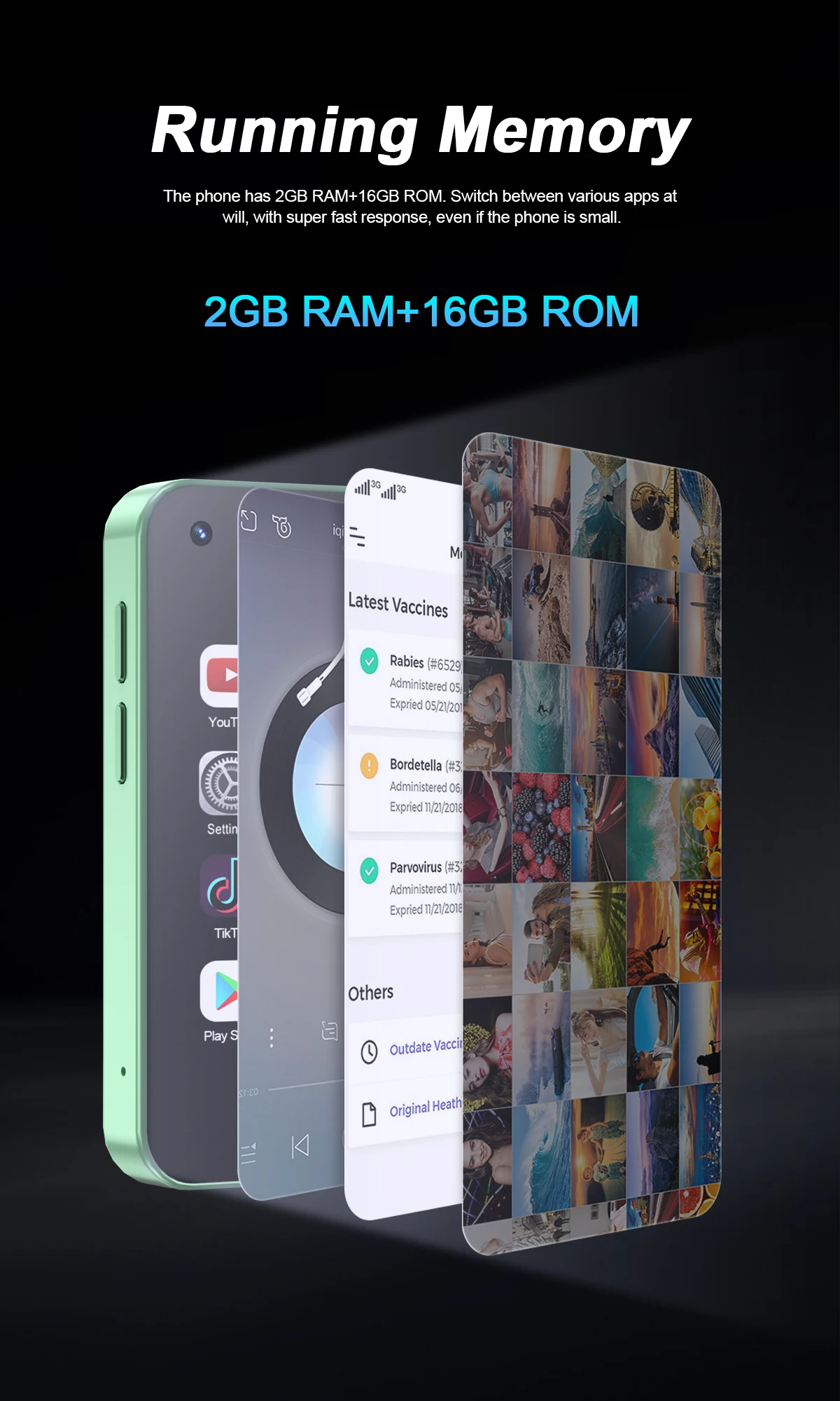 Memoria del teléfono: 2 GB de RAM + 16 GB de ROM, compatible con la versión de Android 9.0