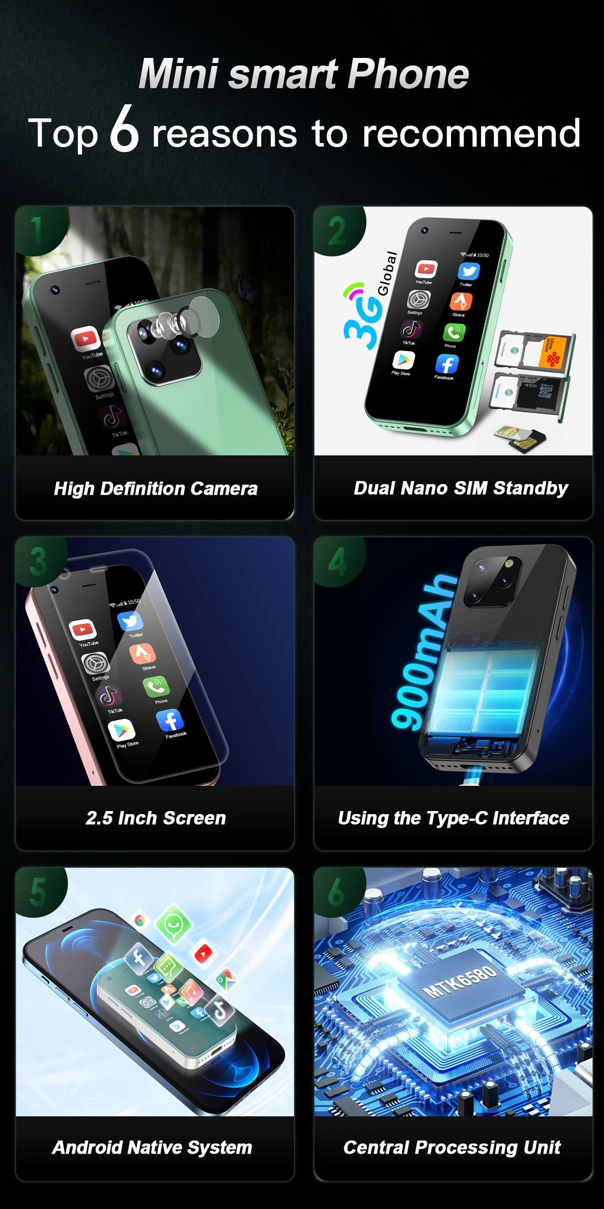 Cantidad de tarjeta SIM: Tarjeta dual Modo de espera dual (2 * tarjetas Nano) o (1 * tarjeta Nano, 1 * tarjeta de memoria)