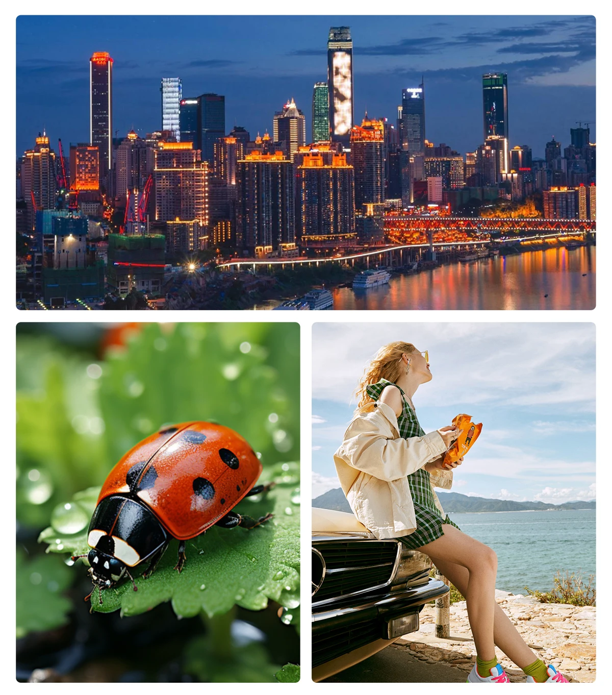 Combinación de cámara dual, imágenes delicadas