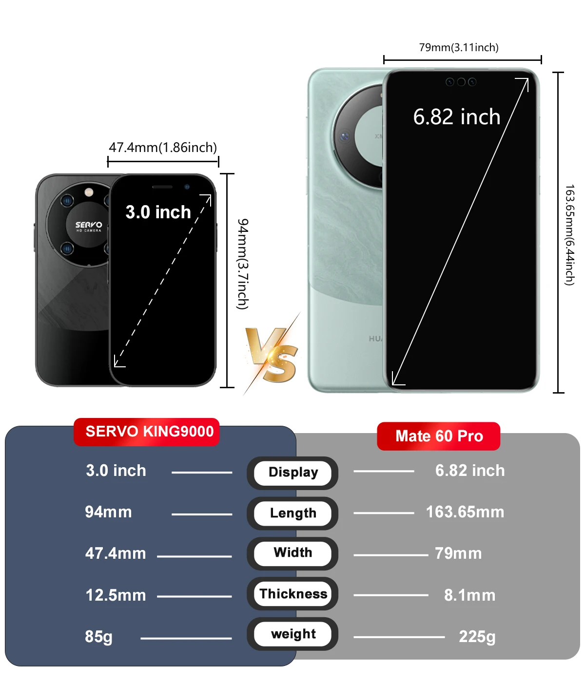 ▸Tamaño del teléfono: 94*47,4*12,5 mm