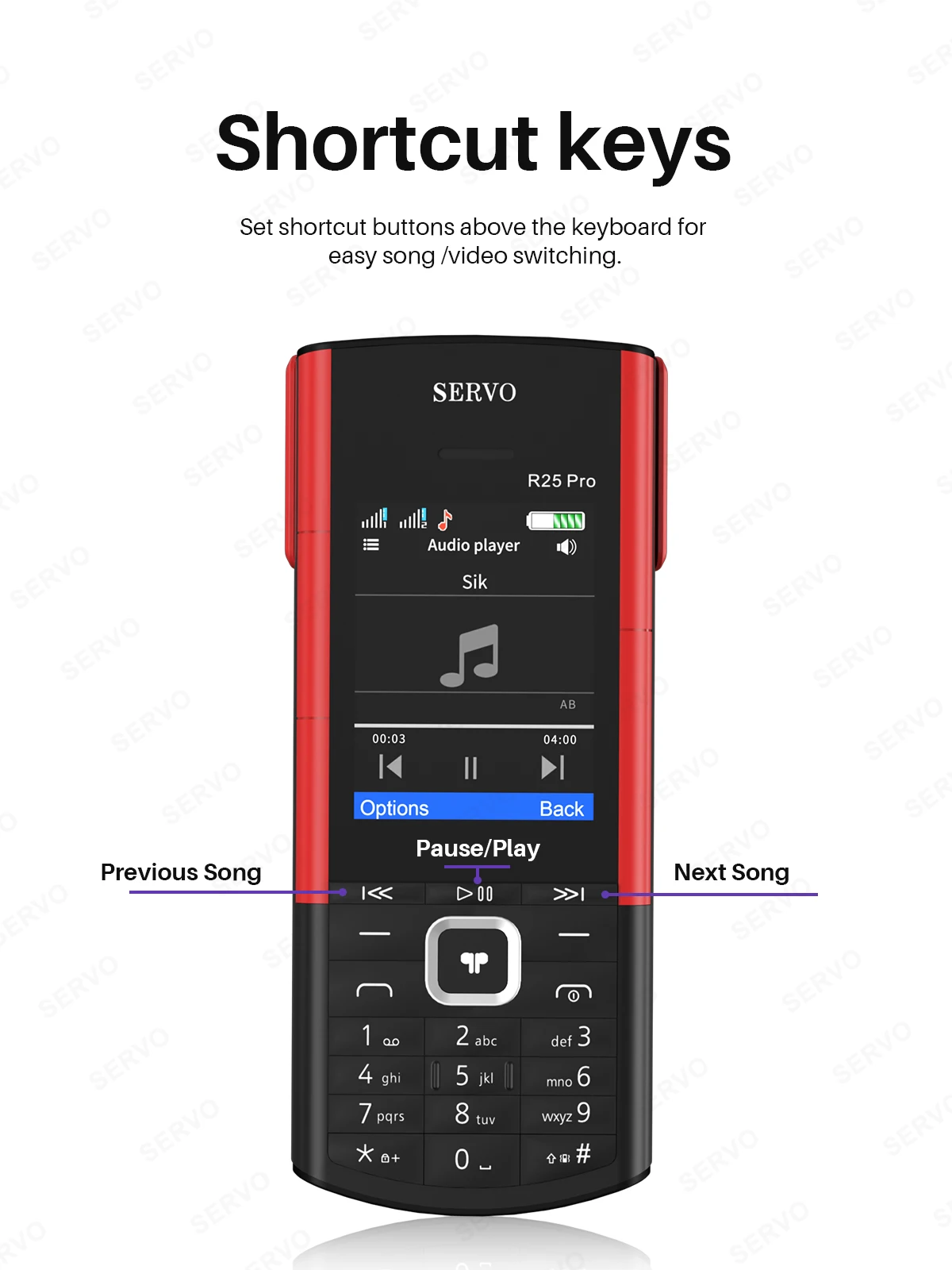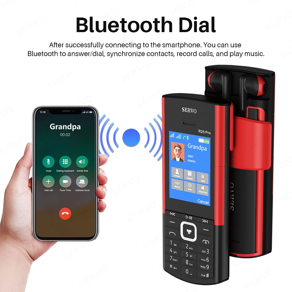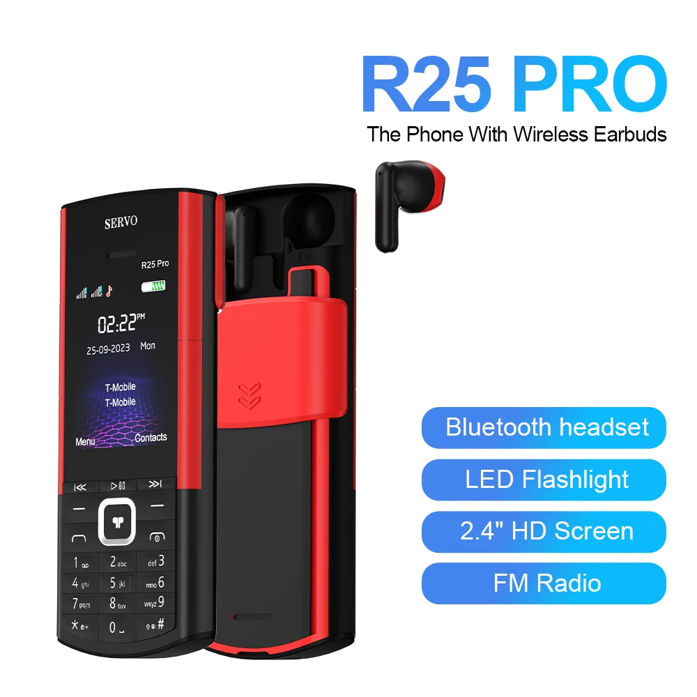 Comprar SERVO R25 PRO botón teléfono móvil 2G GSM Bluetooth grabadora de llamadas de marcación lista negra pantalla de 2,4 "teléfono móvil auriculares TWS integrados