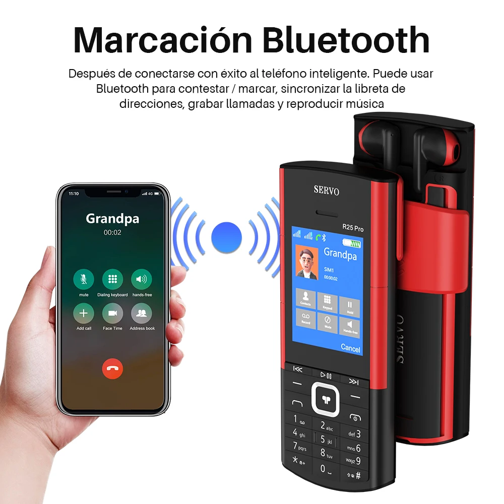 Equipado con auriculares Bluetooth, deslice la cubierta trasera del teléfono para quitarlo, almacenamiento y carga convenientes.