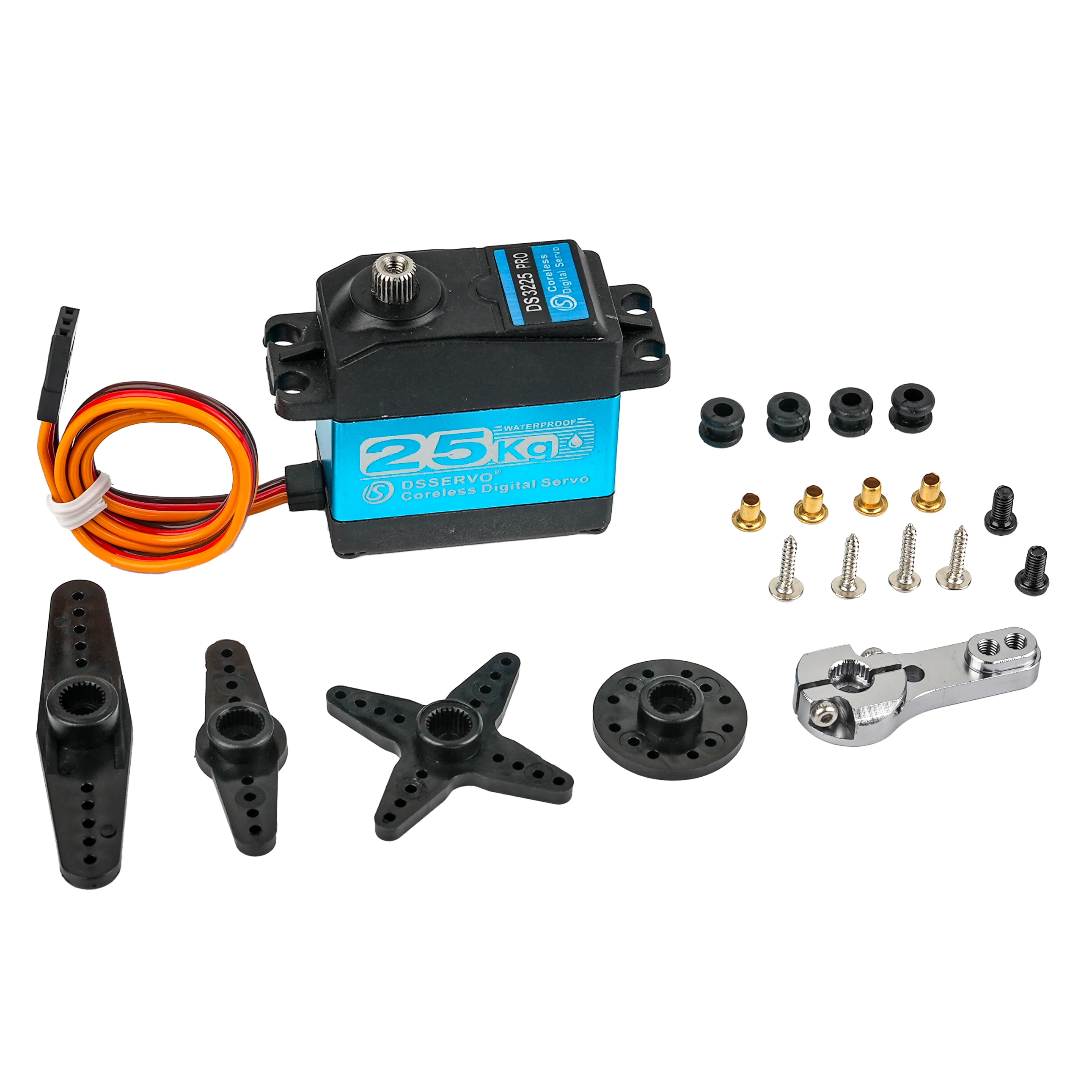 DS3225 PRO 25KG 7.4V Servo robótico digital Engranaje de metal de 180 grados Impermeable IP66 con motor sin núcleo de brazo servo de 25T para Robot de coches RC