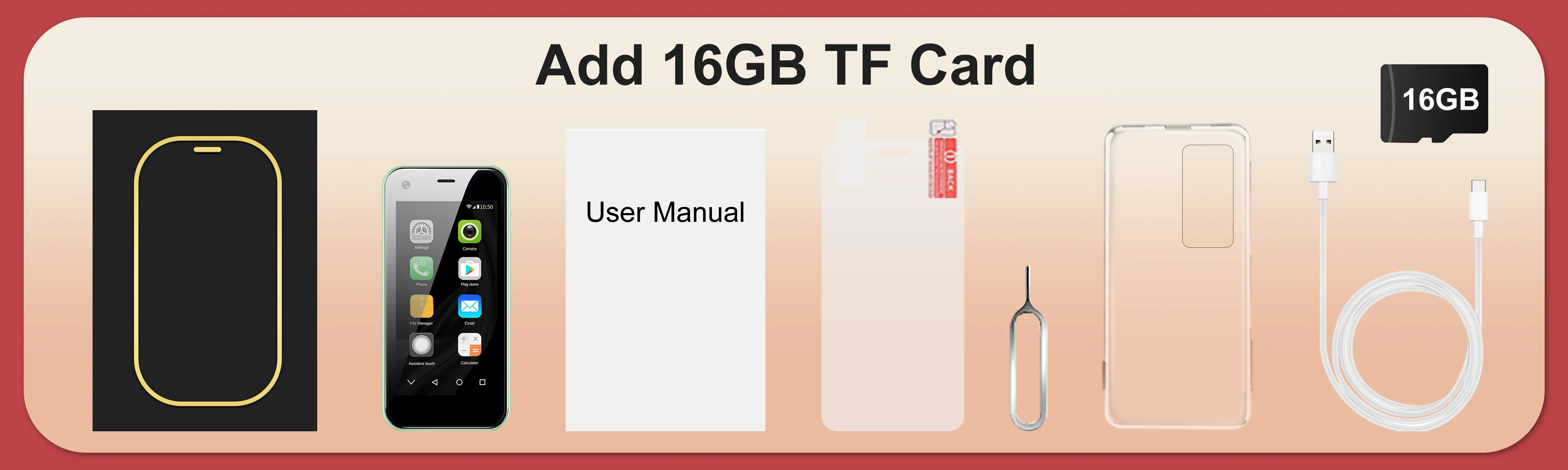 1 x teléfono (batería incluida),1 x cable de datos, 1 x aguja SIM, 1 x manual, 1 x funda (regalo gratis),1 x película protectora HD (regalo gratis),1 x tarjeta de memoria de 16GB