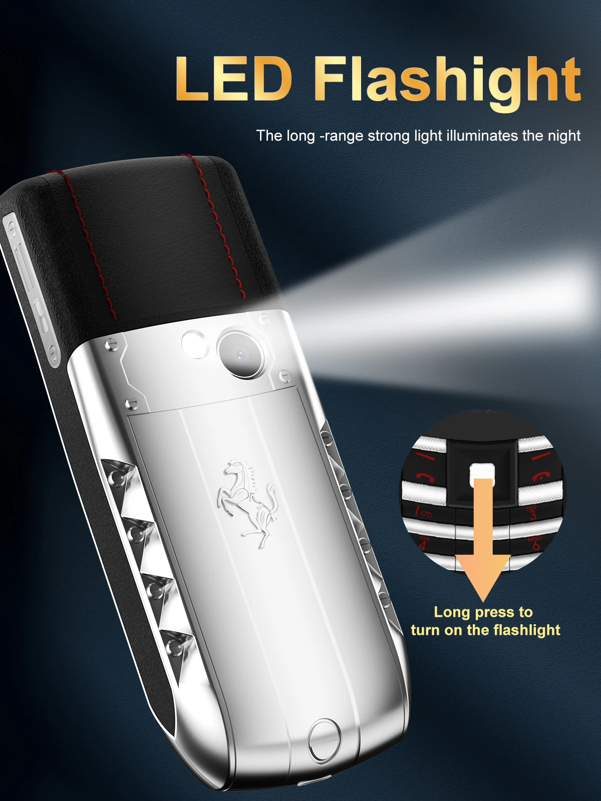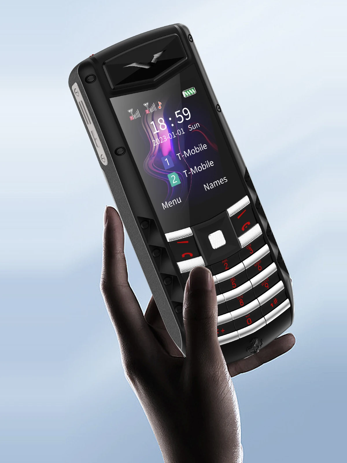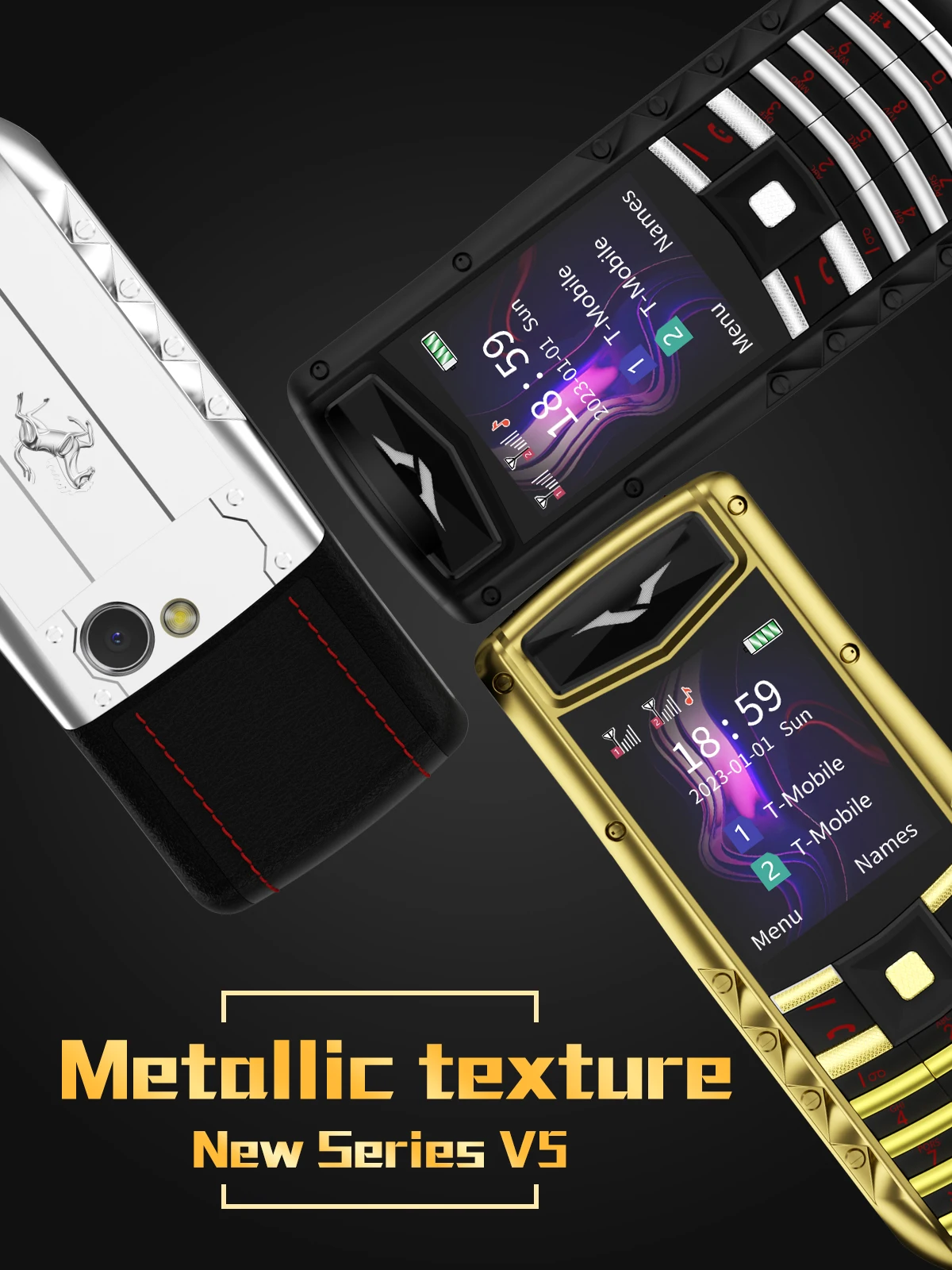 El nuevo teléfono de acero de diseño innovador 2023 está hecho de diversos materiales como acero, cuero y plástico.Pequeña y exquisita, experiencia táctil real, que muestra el lujo.