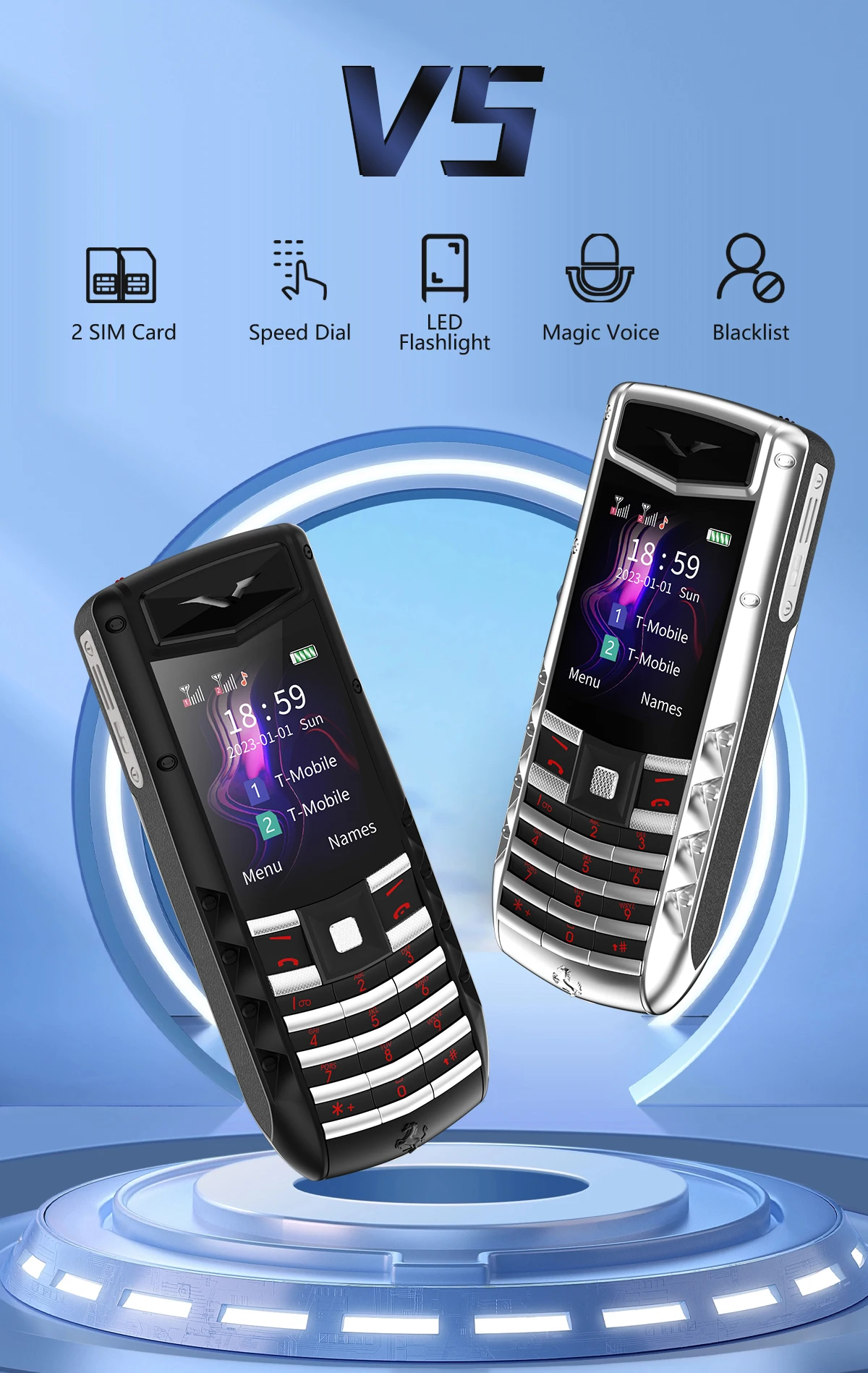 Comprar SERVO V5 PRO-teléfono móvil de diseño único, cuerpo aerodinámico, marco de Metal, 2G, doble Sim, linterna LED, voz mágica, teléfono móvil de lujo