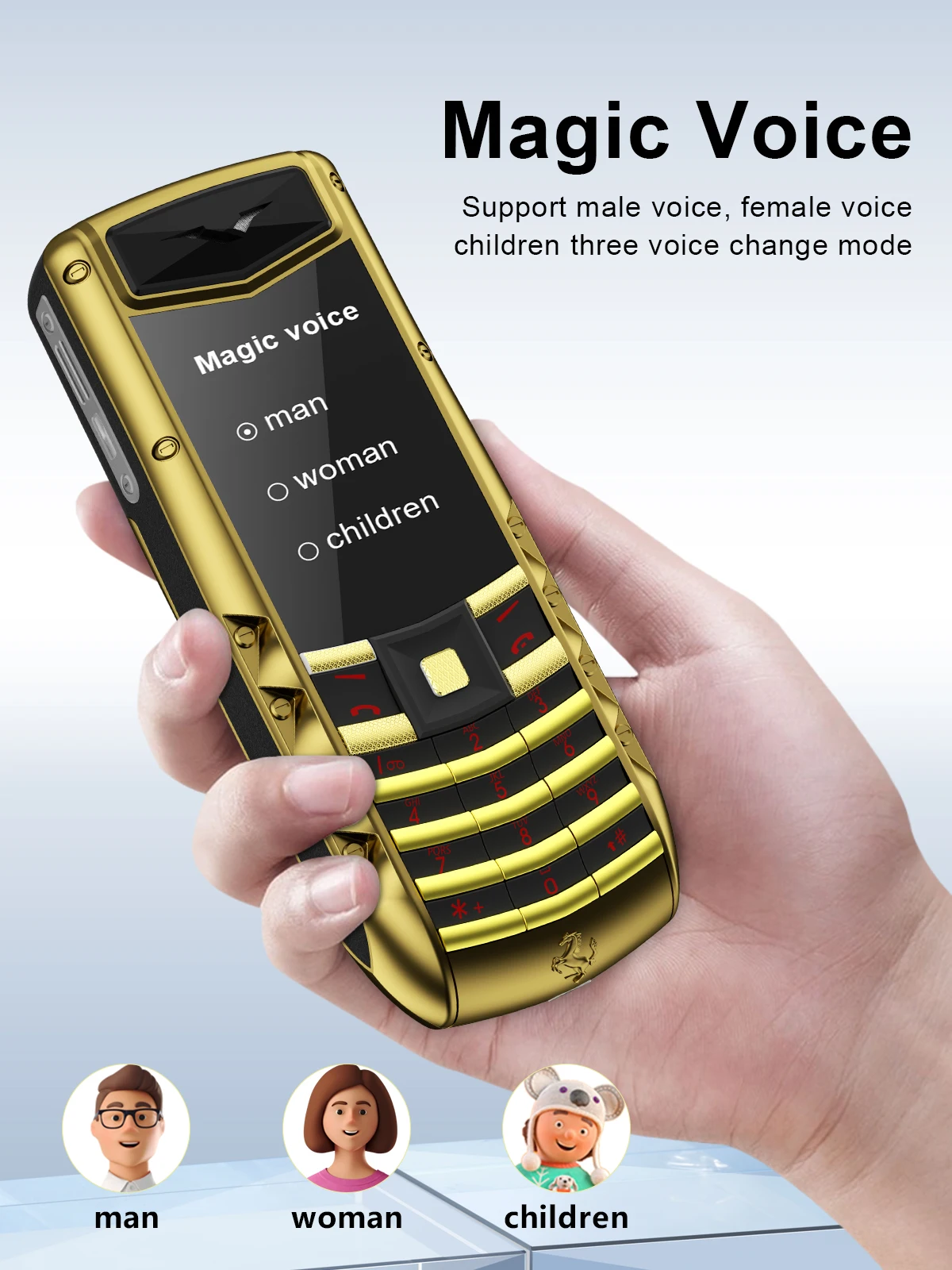 Tres idiomas, cualquier elección, voz masculina/femenina/niño.Se puede cambiar libremente durante la llamada, enfatizando la protección de la privacidad y aumentando la diversión de la llamada.