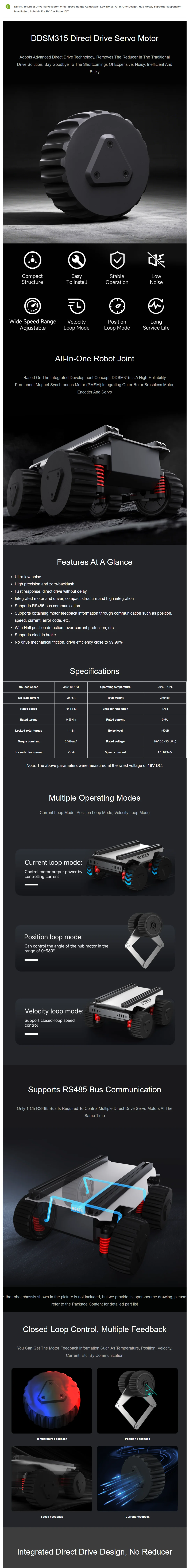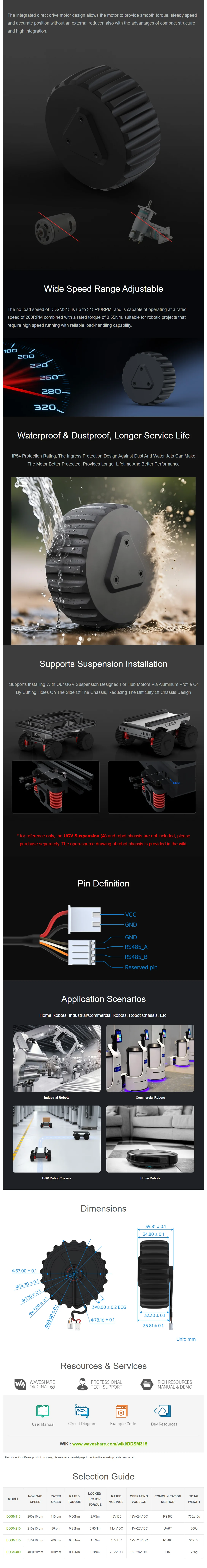 Comprar Servomotor de accionamiento directo Waveshare DDSM315, amplio rango de velocidad ajustable, bajo ruido, diseño todo en uno, Motor de cubo, Robot de coche RC DIY