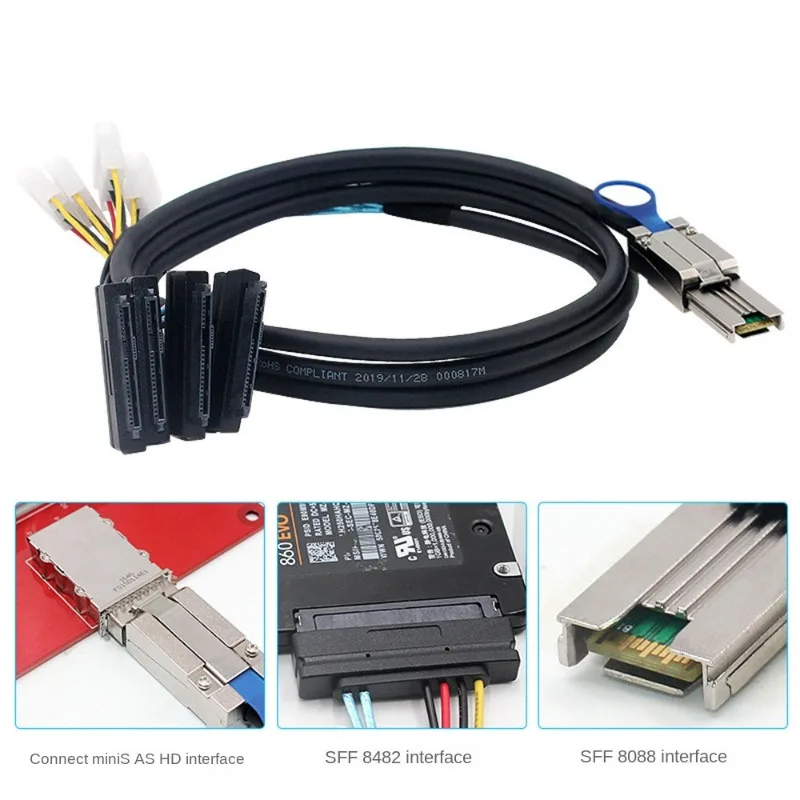 Mini SAS HD SFF-8088 26P a 4X SAS SFF-8482 con cable de servidor de datos de alimentación 4P