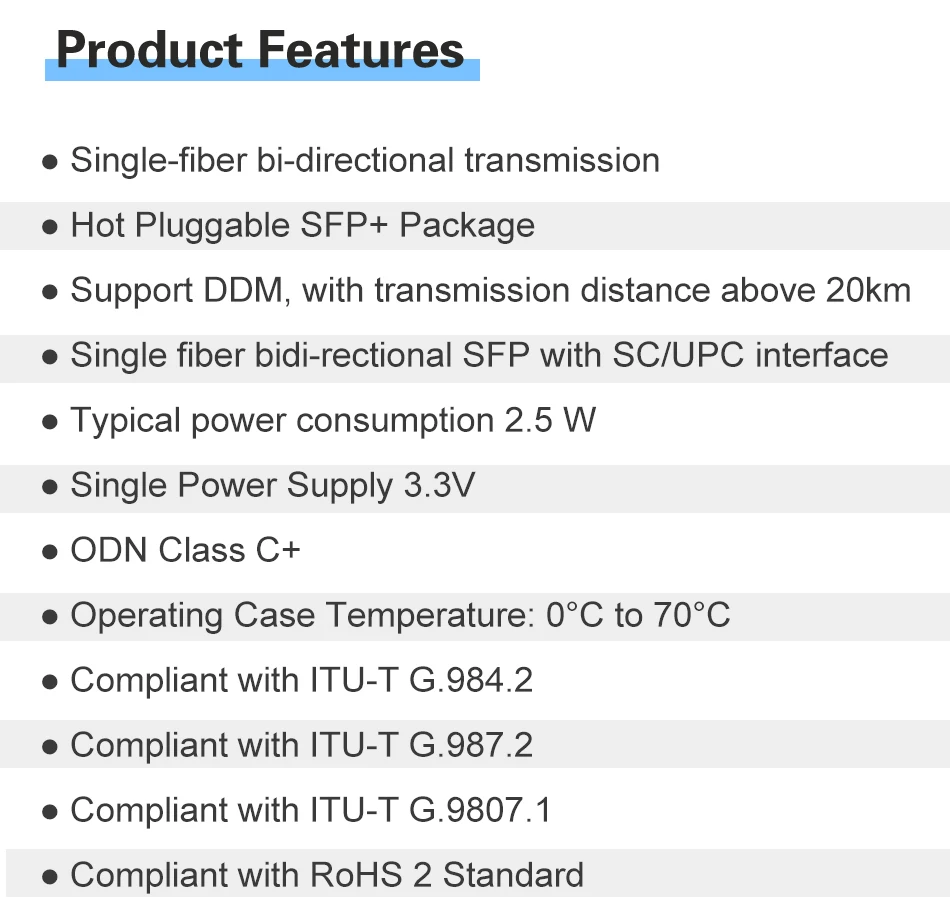 PON SC de 2,5G/1,25GMódulo transceptor SFP C+/C++/C+++/C++++