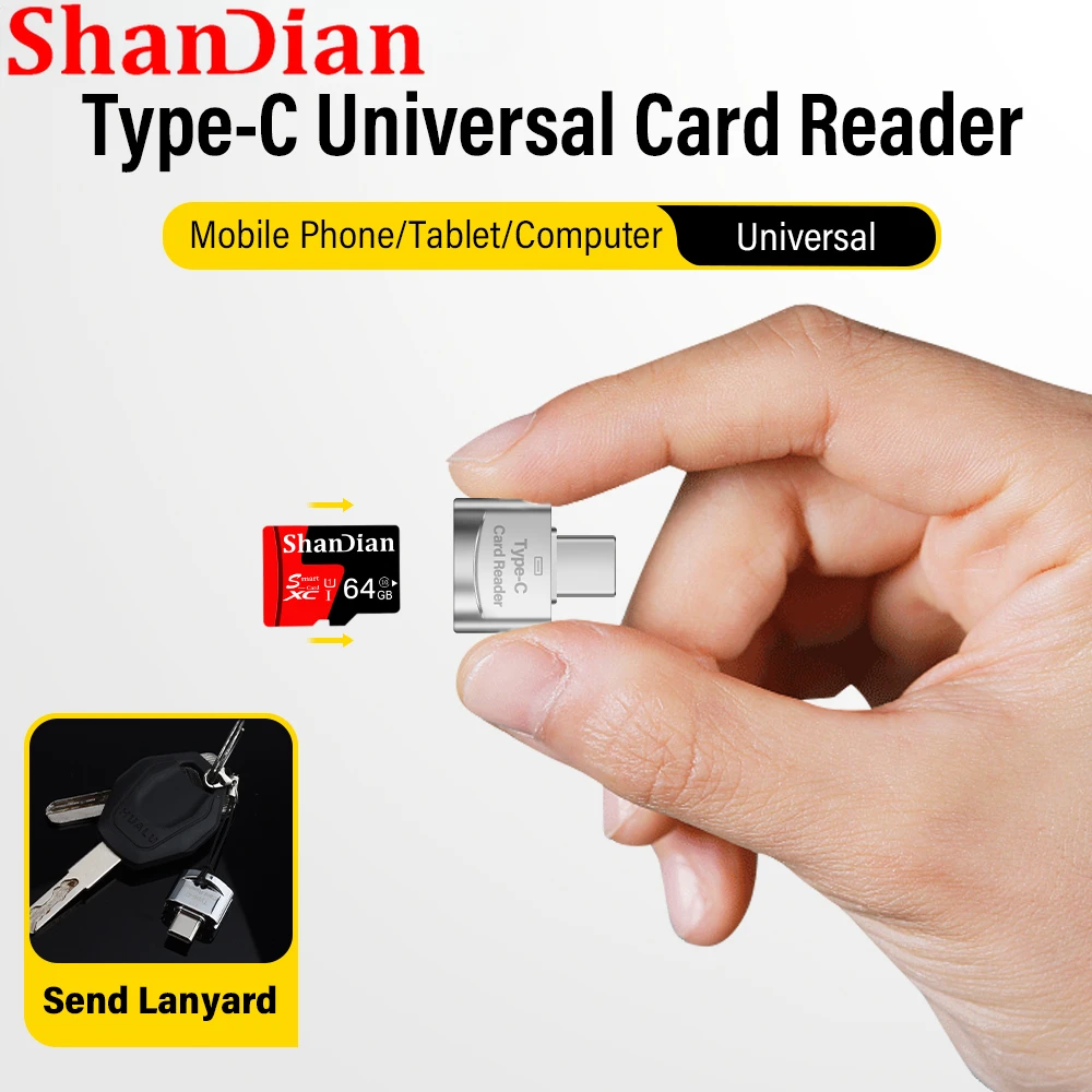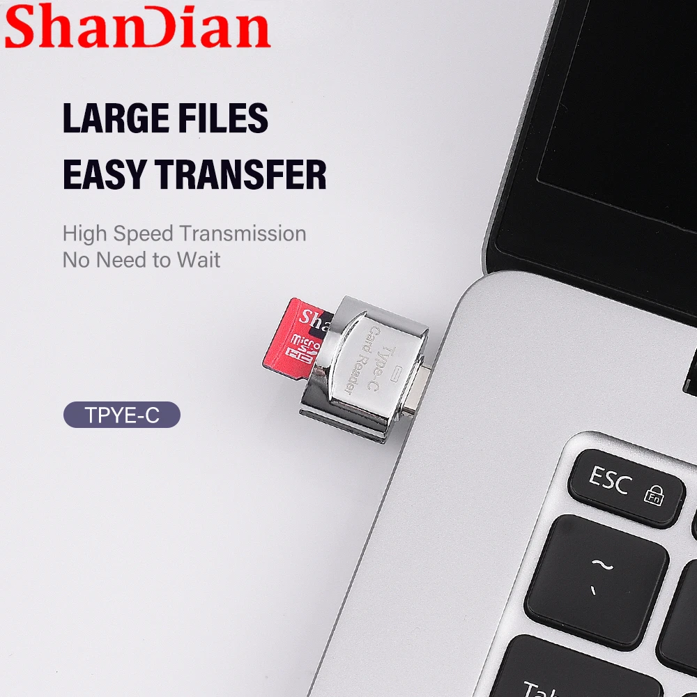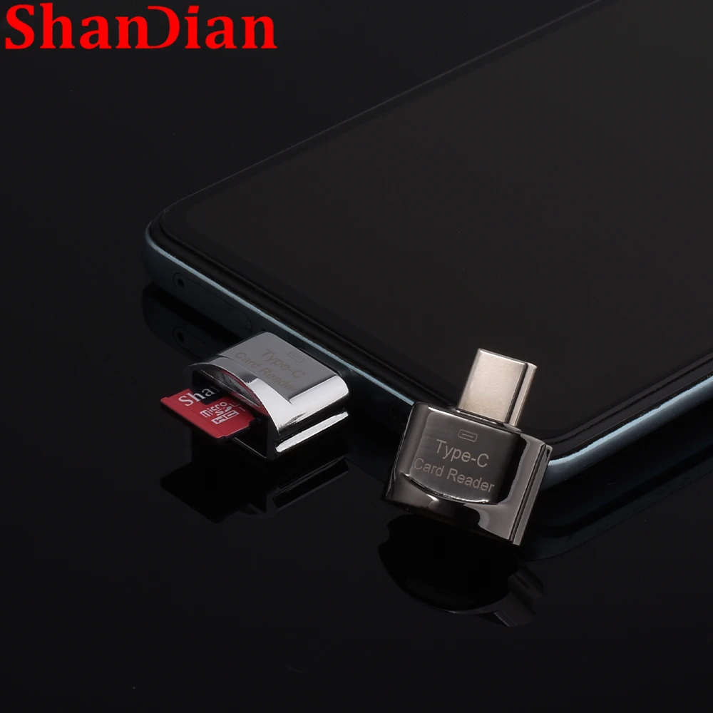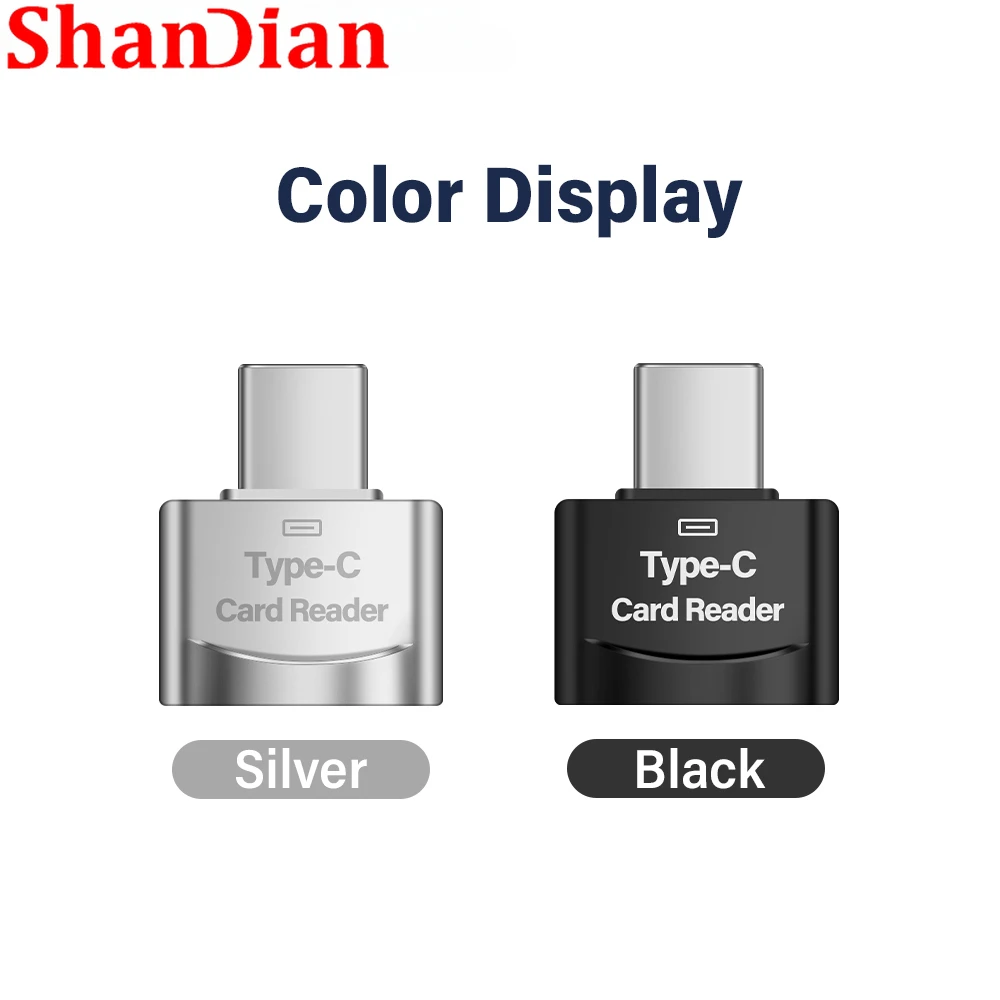 SHANDIAN-Mini lector de tarjetas Universal de Metal tipo C, alta velocidad, para teléfono móvil, tableta, ordenador, lector de tarjetas de Memory Stick plateado