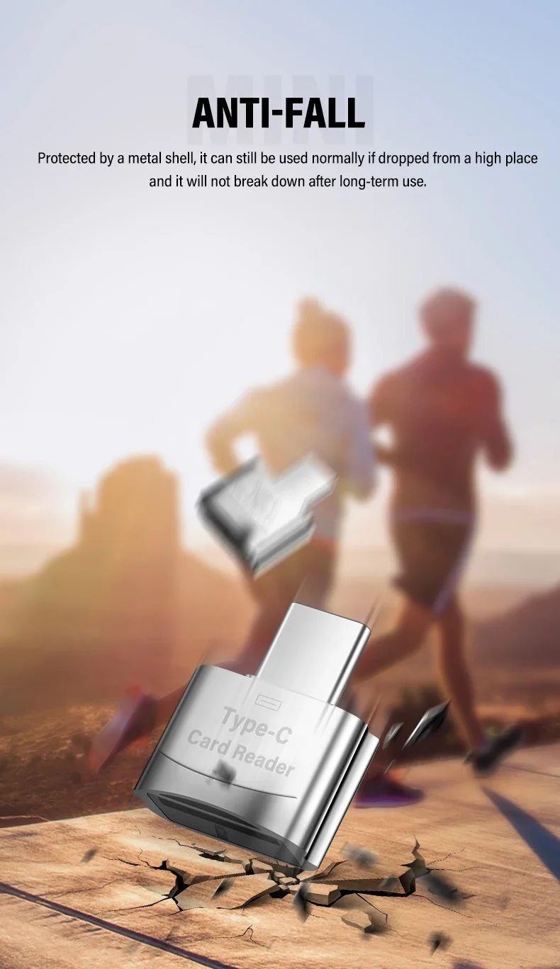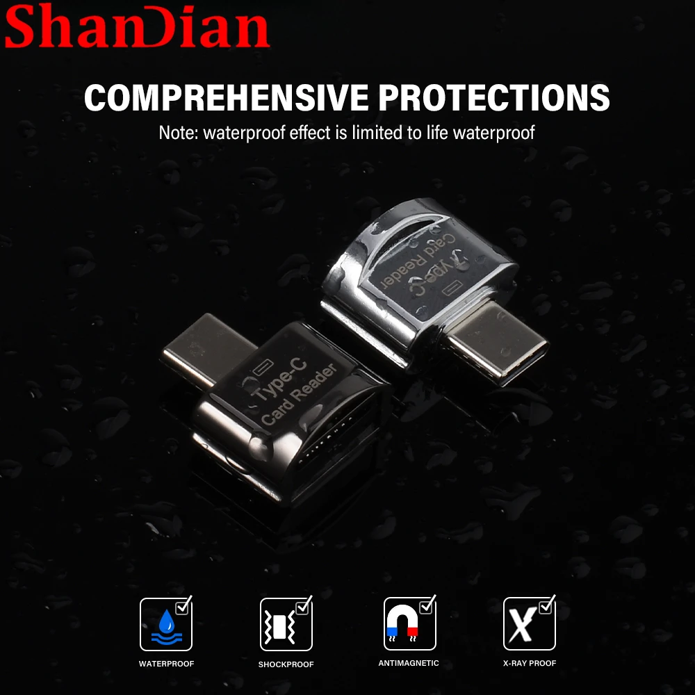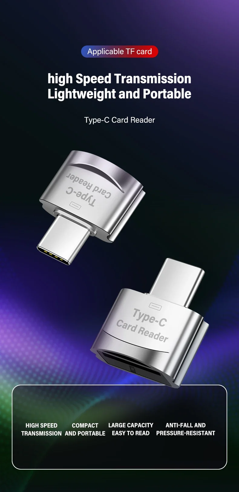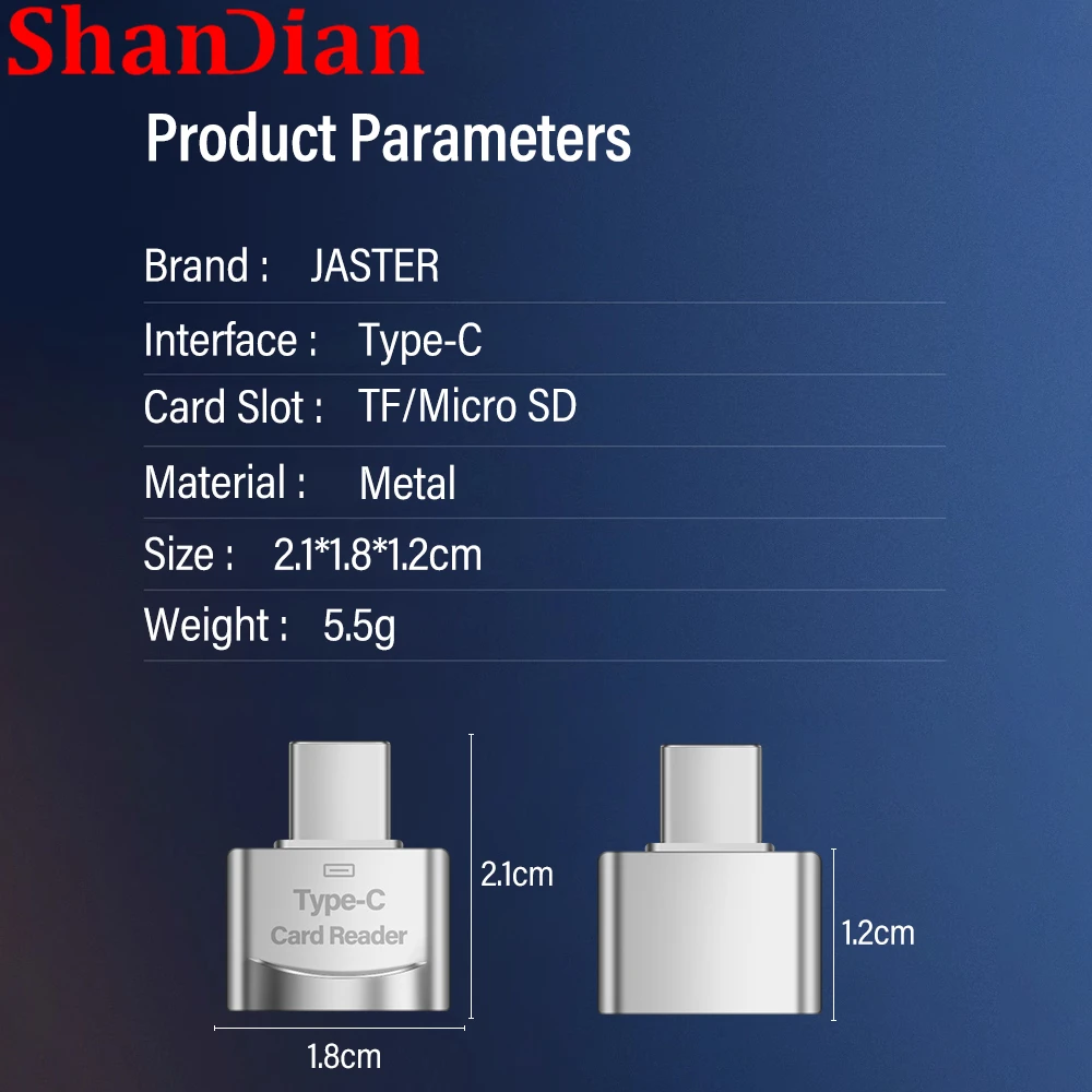 SHANDIAN-Mini lector de tarjetas Universal de Metal tipo C, alta velocidad, para teléfono móvil, tableta, ordenador, lector de tarjetas de Memory Stick plateado
