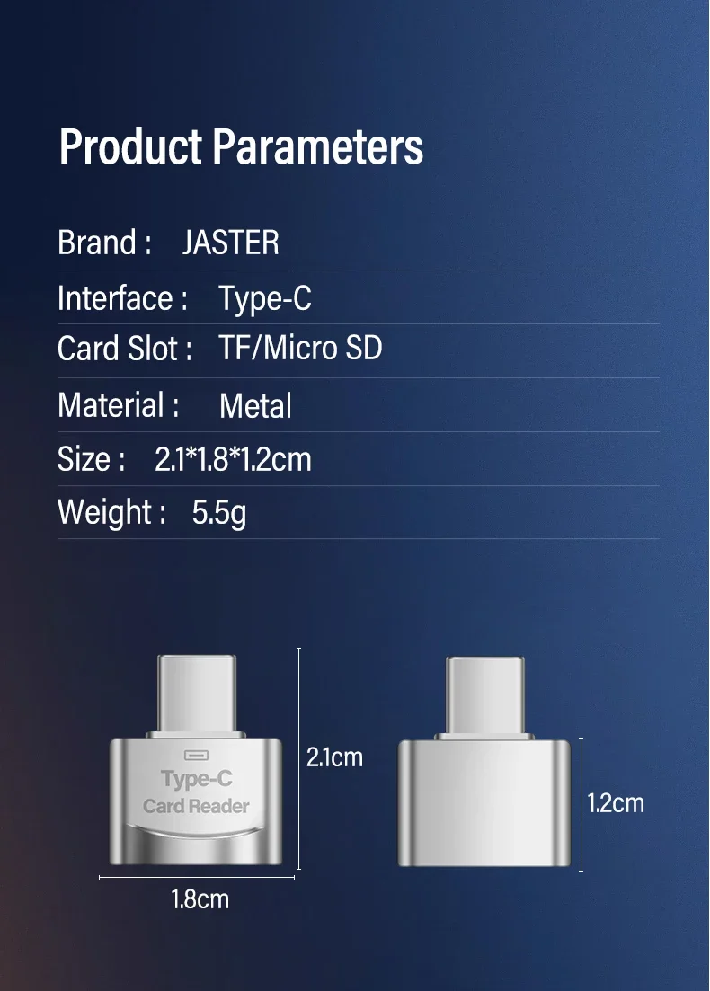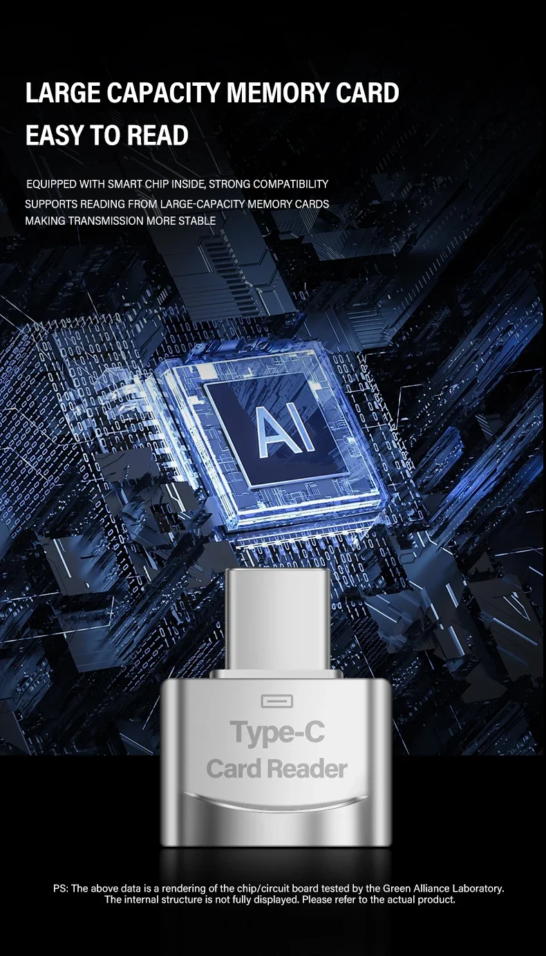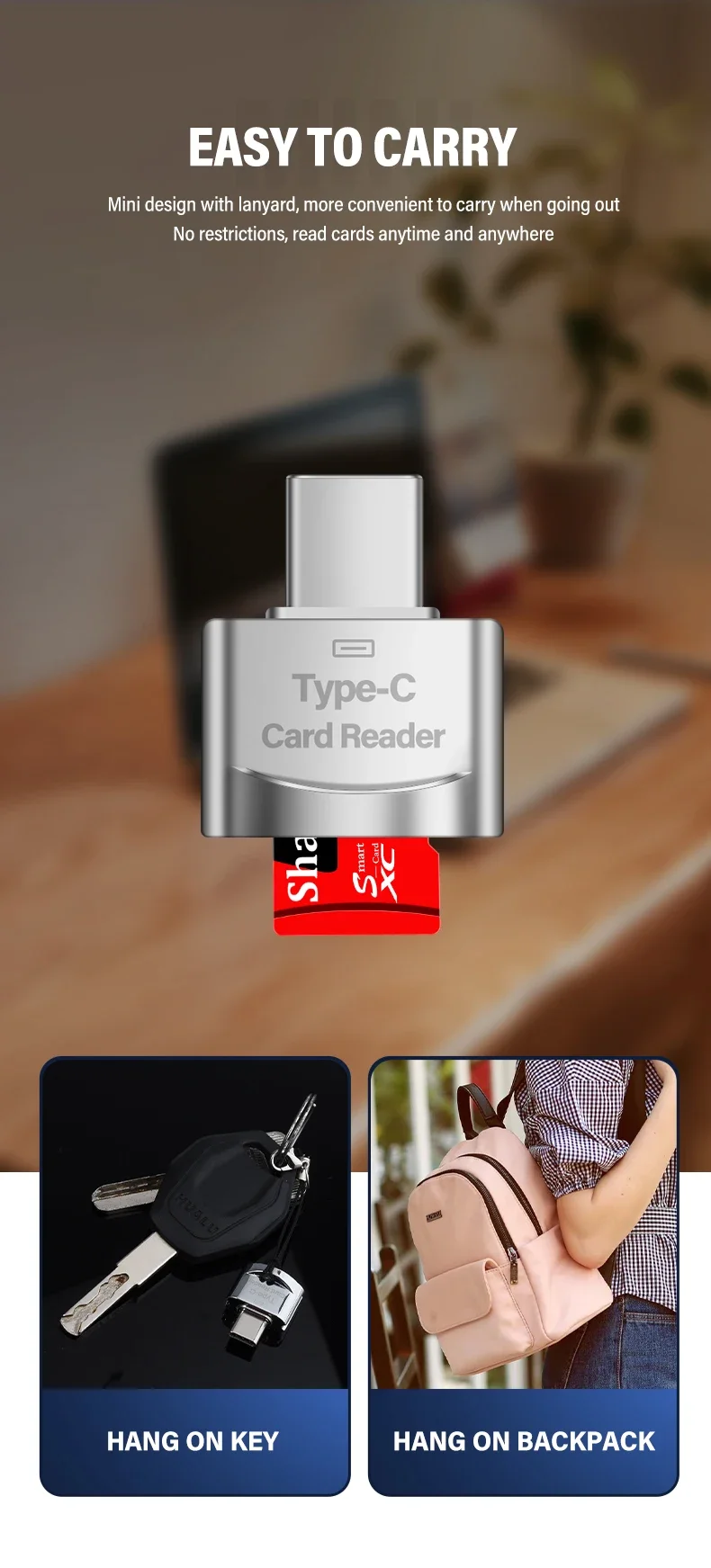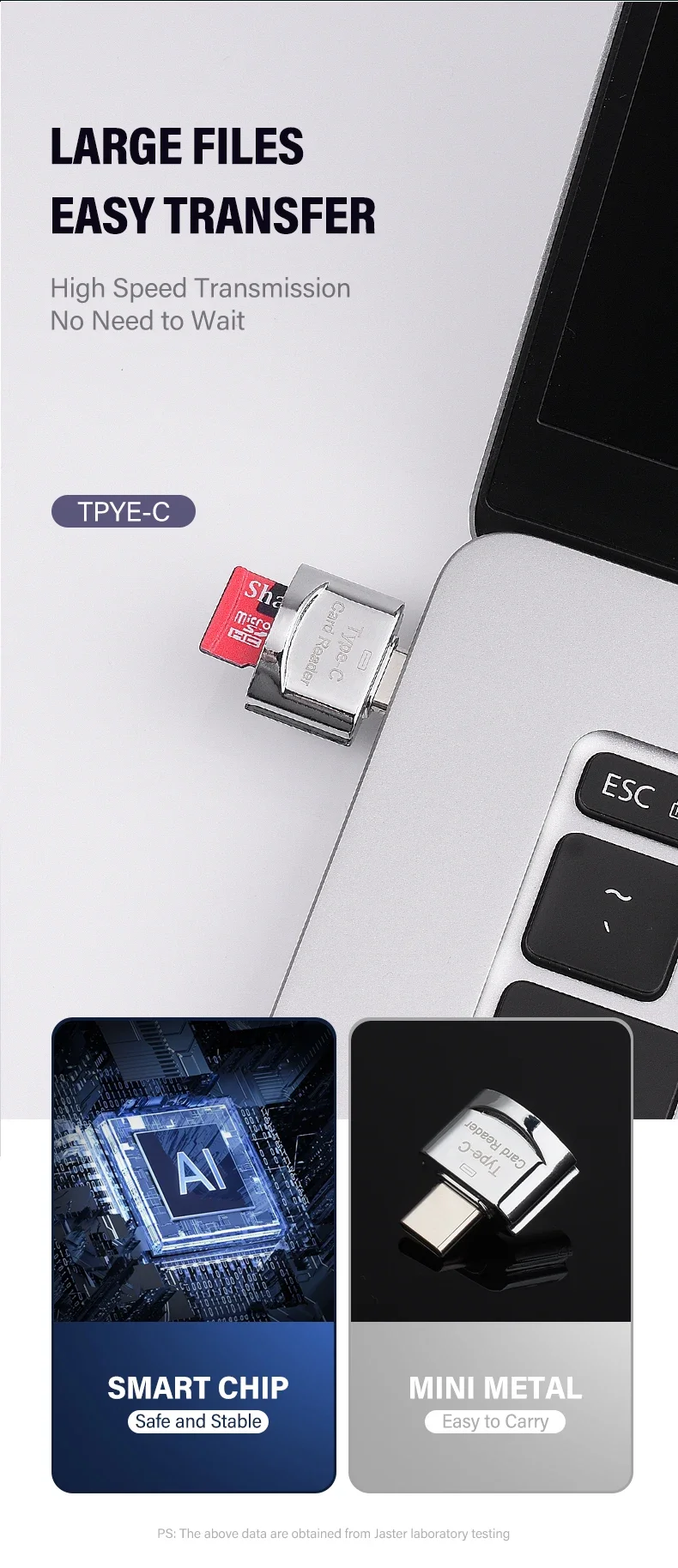 SHANDIAN-Mini lector de tarjetas Universal de Metal tipo C, alta velocidad, para teléfono móvil, tableta, ordenador, lector de tarjetas de Memory Stick plateado