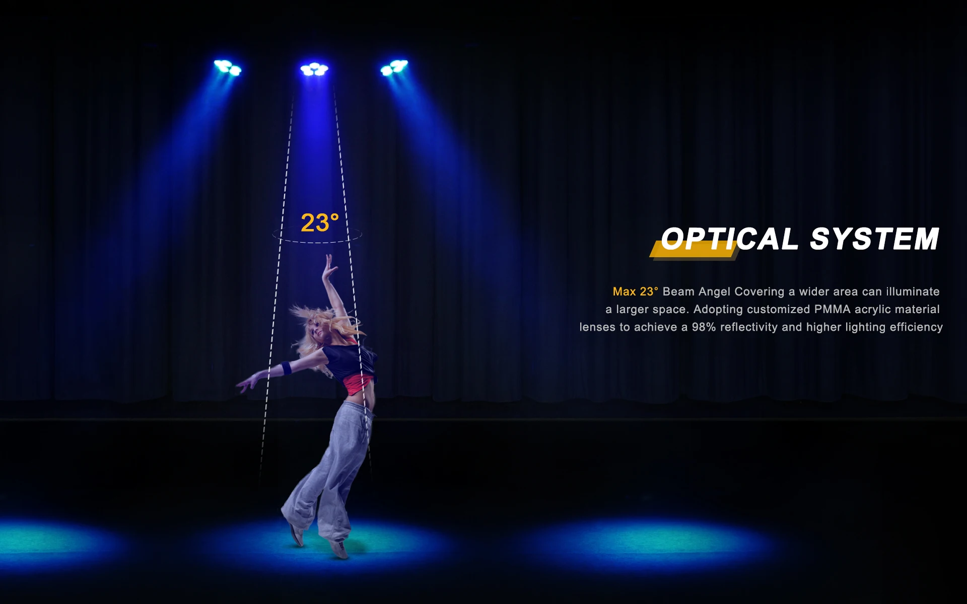 Máximo 23° Beam Angel Cubre un área más amplia puede iluminar un espacio más grande.