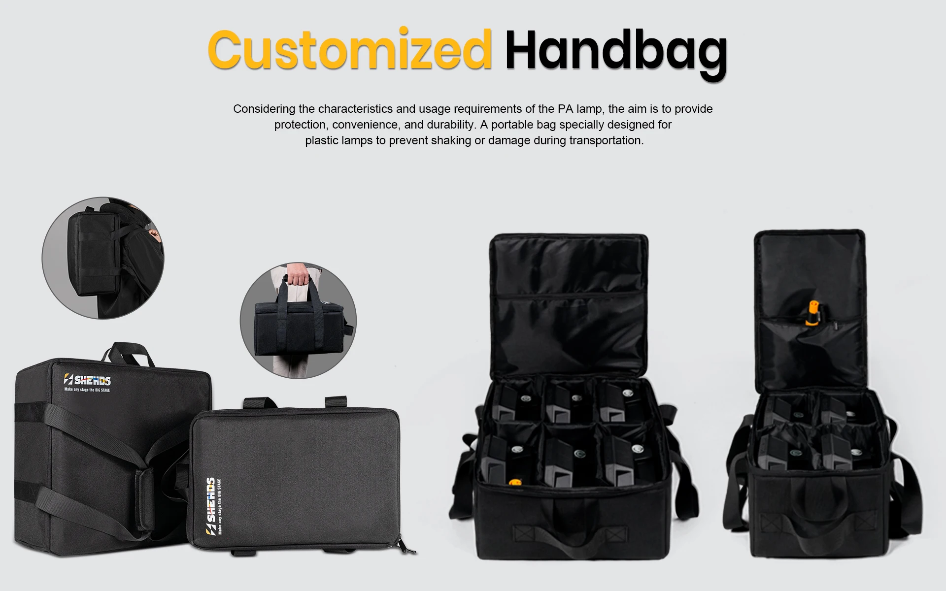 Una bolsa portátil especialmente diseñada para lámparas de plástico para evitar sacudidas o daños durante el transporte.